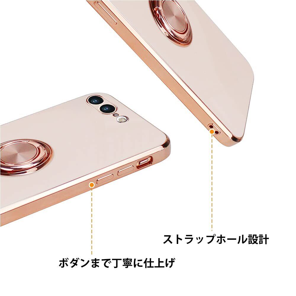 JOOBOY iPhone8Plus ケース iPhone7 Plus ケース リング付き メッキ加工 レンズ保護 tpu ソフト ストラップホール付き 耐衝撃 スリム おしゃれ iPhone 8Plus アイフォン8 Plus ケース (iPhone7 Plus/iPhone8 Plus, ミルクティーの色)