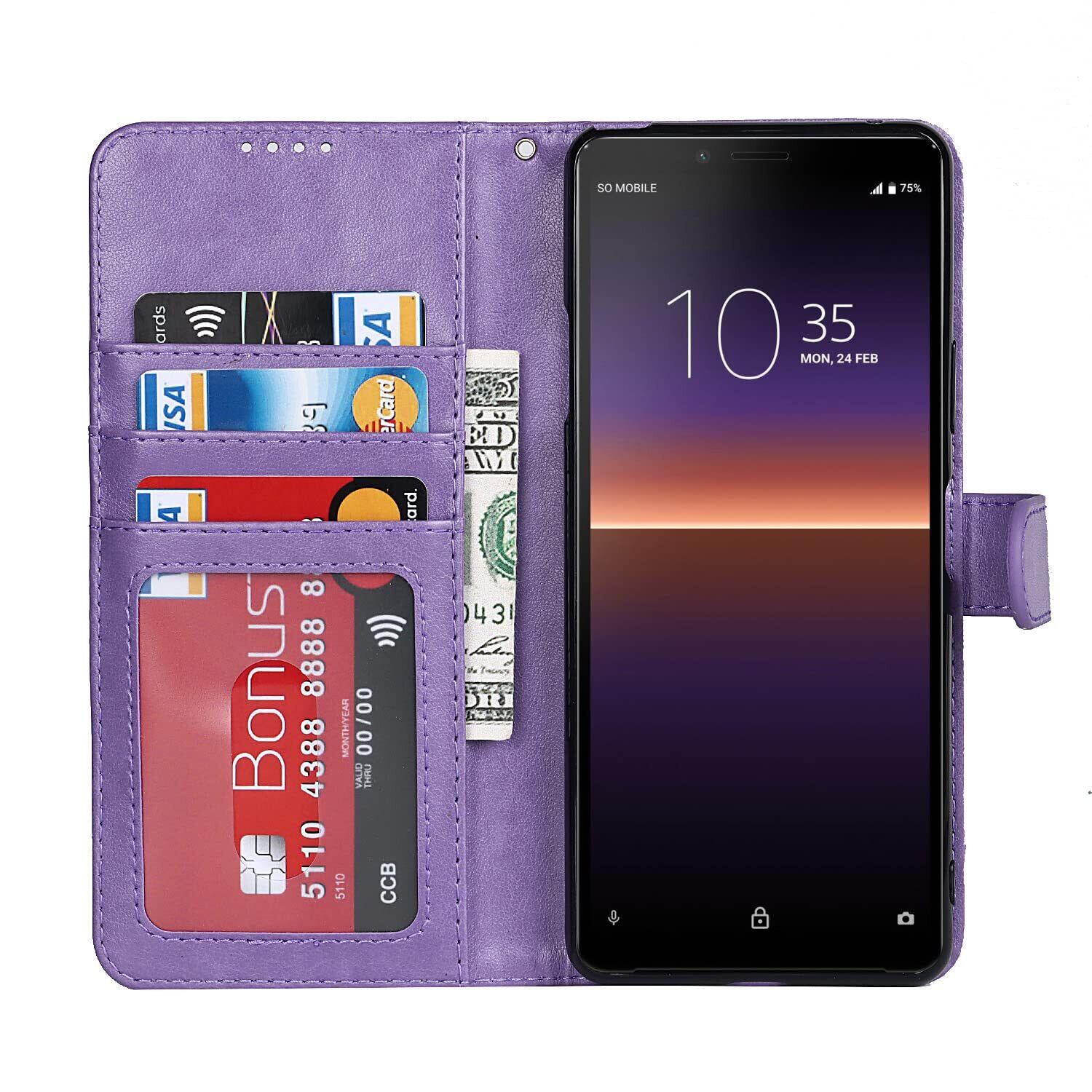 Xperia 10 II ケース 手帳型 ソニー Xperia 10 ll カバー Xperia10 ll ケース SO-41A docomo / SOV43 au ワイモバイル SIMフリー 対応 xperia10ii ケースSO41A カバー ソニー エクスぺリア Xperia10 II 手帳型 エクスぺリア10 II スマホケース 携帯カバー 適用 case ストラップ 紐付き ストラップケース 【iCoverCase】 PUレザー マグネット 留め具 スマホケース カード収納 手帳型 カード入れ ストラップホール付き スプラット付き カードケース パープル