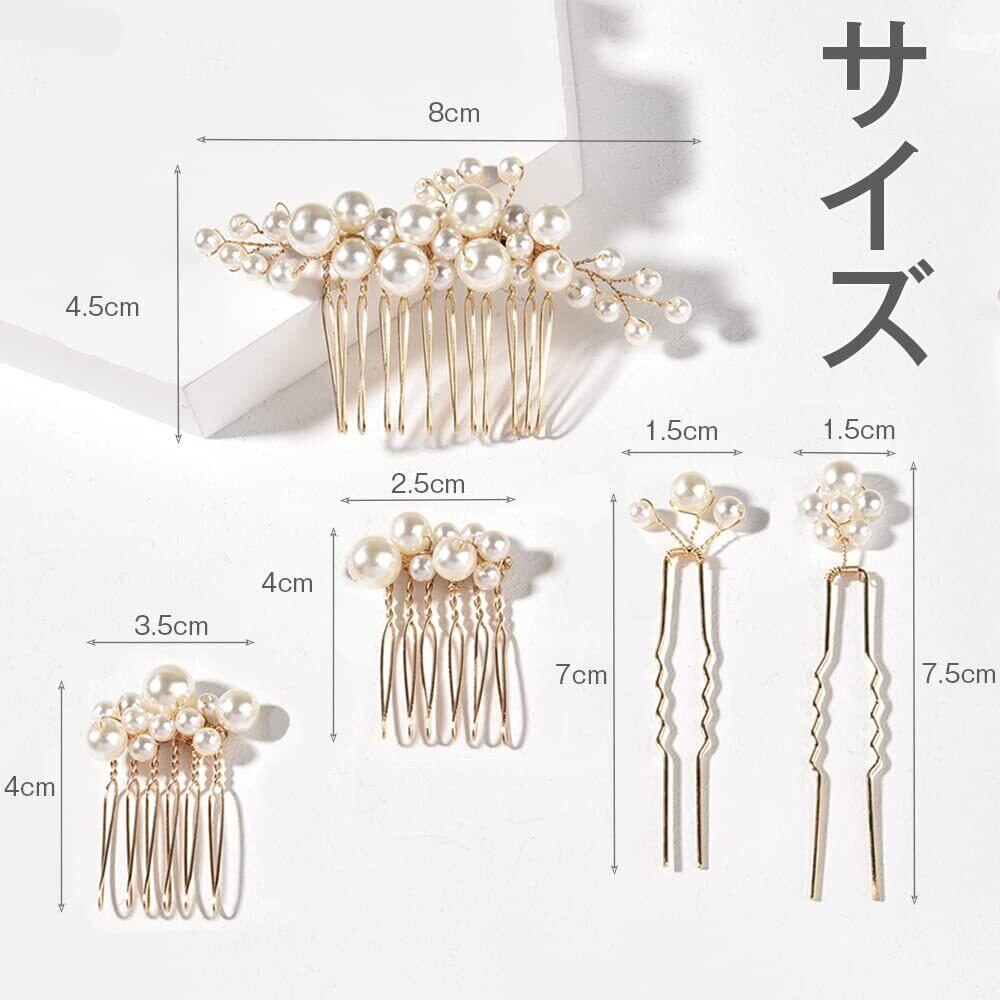 ヘアアクセサリー パール髪飾り 5本セット 3種類 ヘアピン コーム Uピン ヘアクリップ ウェディング 髪飾りフォーマル 結婚式/ウェディング/パーティー/子供 卒業式/入学式/花嫁などの髪飾り用