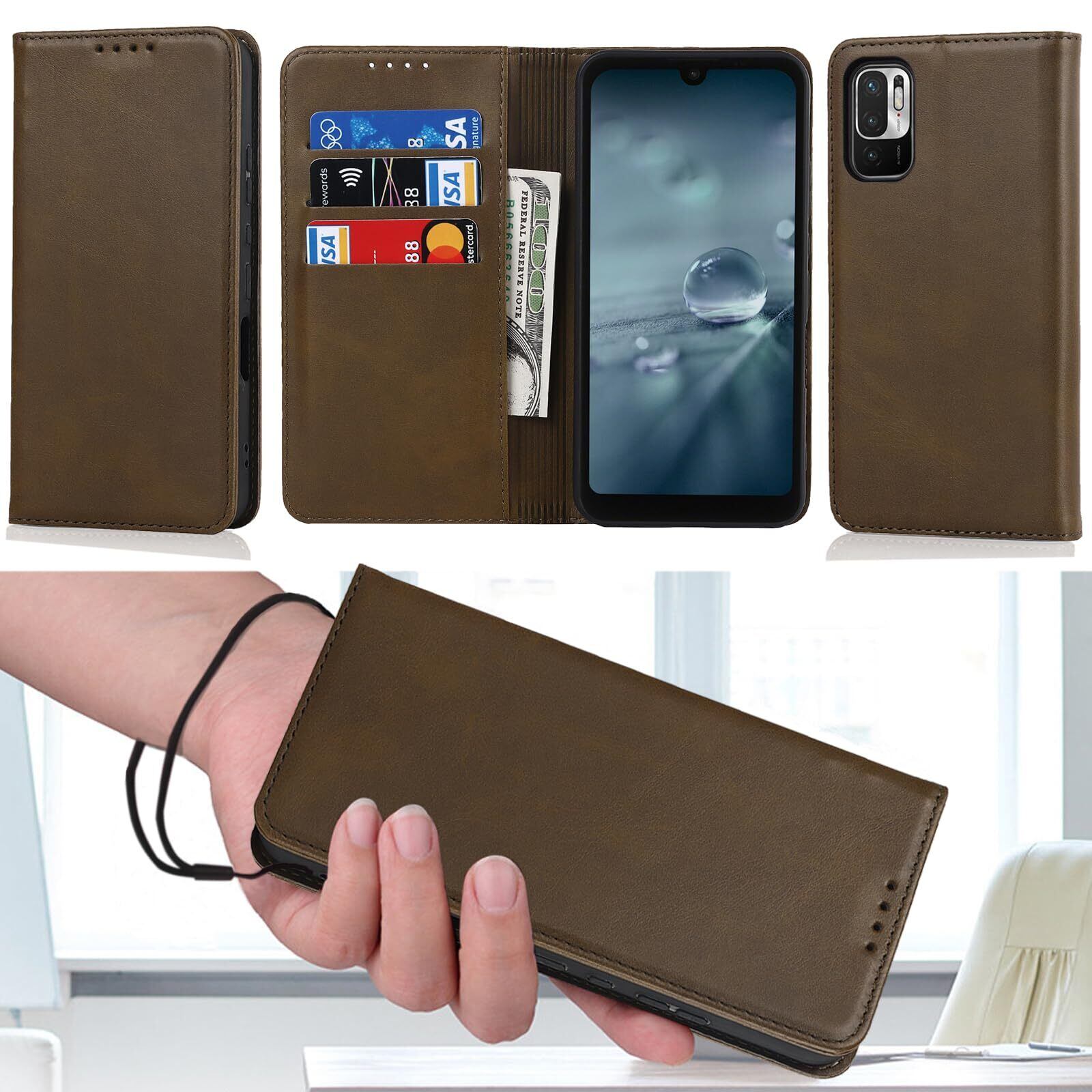 Xiaomi Redmi Note 10 JE/Note 10T A101XM ケース 手帳型 【ストラップ 一本付】 適用 Note 10JE XIG02 スマホケース レドミノート10T 手帳 Note10JE 携帯カバー 適用 case 【AIPITORR】 滑り止め 合成レザー スタンド 手首掛け ハンドストラップ カード入れ マグネット フリップ 落ち着いた色 ダークブラウン