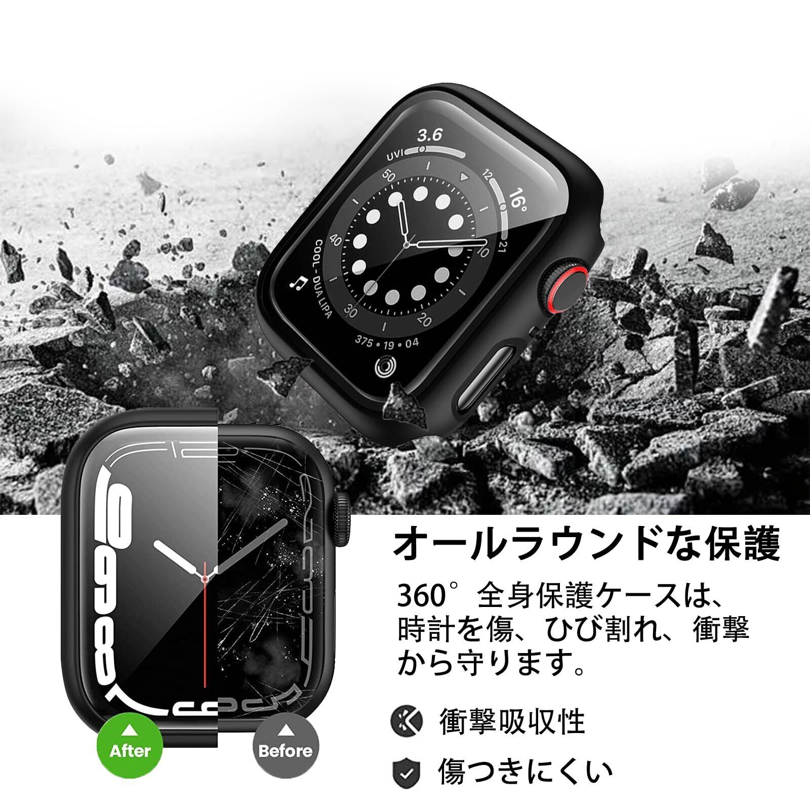 【9Hの硬度&高透過率】 高透明度の日本製ガラス+厚さ約1.3mm、重さ2.13gの極薄軽量なPC枠 硬度9Hと強靭な液晶部保護フィルムで、外部の衝撃から大切なApple Watchを守ります。また、透明度の高い液晶ガラス素材で作れられており、本来の明るくカラフルな画質を保ちます。
