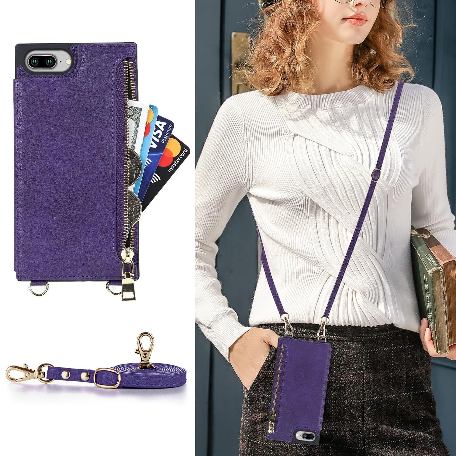 NODALA iPhone 7plus/8plus ケース 手帳型 背面収納 ショルダー あいふぉん 7ぷらす/8ぷらす カバー アイフォ 7プラス/8プラス ケース 財布型 いphone 7plus/8plus スマホケース 肩掛け 斜めがけ 首かけ ストラップ付き 長さ調整可能 携帯ケース おしゃれ カード収納 左右開 耐衝撃 ステント機能 パープル