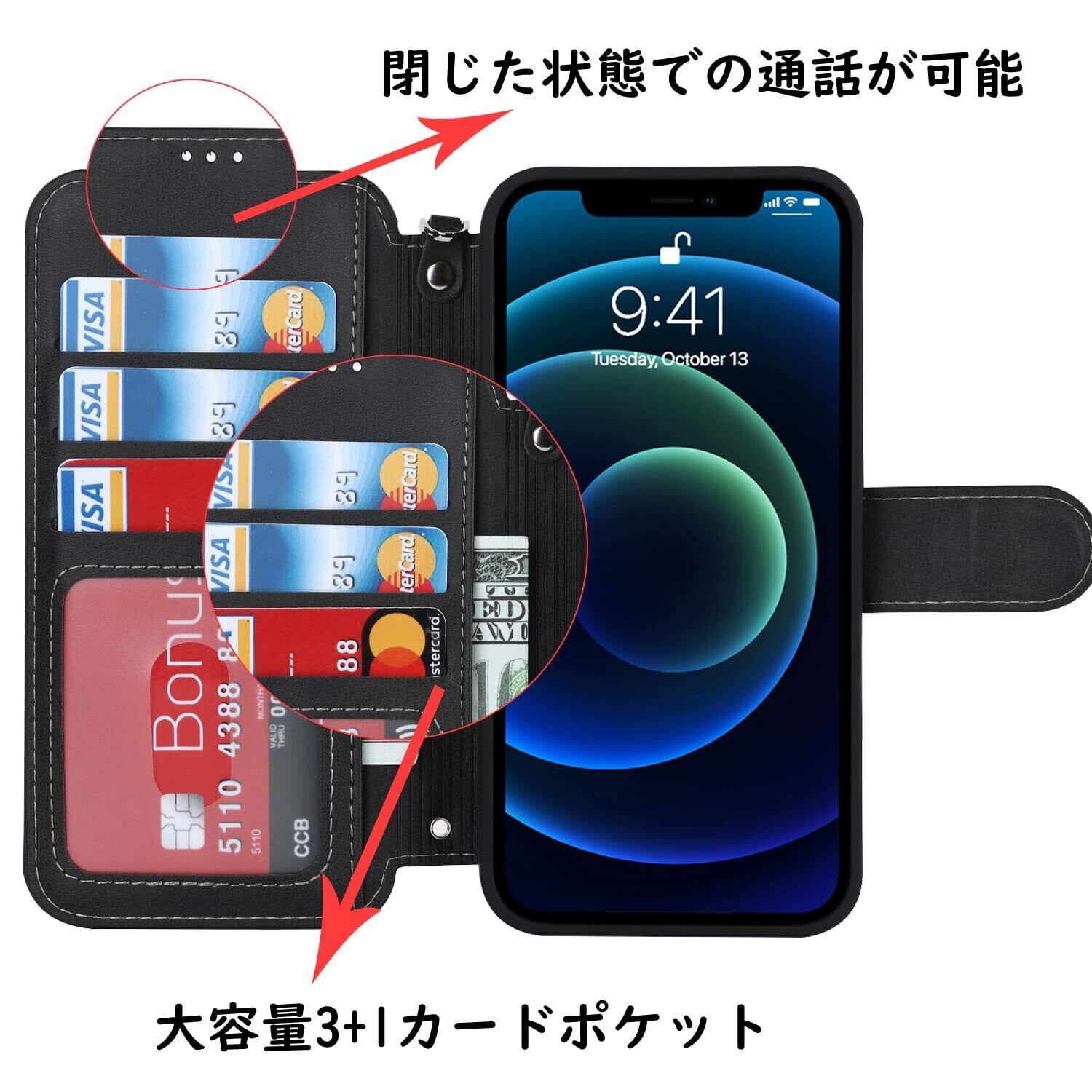 【収納機能】ケース内側に実用性のカード入れポケット×3、内側ポケット×1。また、消磁を防ぐために、カードスロットにあまり多くのカードを入れないことをお勧めします。携帯電話ケースのアップグレードでは、側面にストラップが追加され、脱落することなく手に掛けることができます。カードスロットに2枚のカードを入れると、内蔵マグネットの機能を最大限に発揮し、カードが消磁されるのを防ぐことができます。