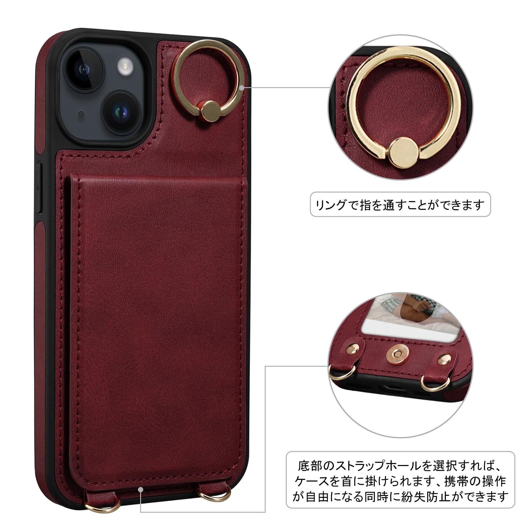 【特価商品】Shlybaay iPhone 15 Plus 用 ケース 背面 手帳型 iPhone15 Plus 用 カードケース 手帳型ケース 背面ケース スマホケース ショルダー ストラップ 肩掛け スタンド カード収納 斜め掛け 首掛け PUレザー マグネット アイホン 15 プラス 用 可愛い 人気 おしゃれ アイフォン 15 ぷらす 用 6.7inch対応 レッド