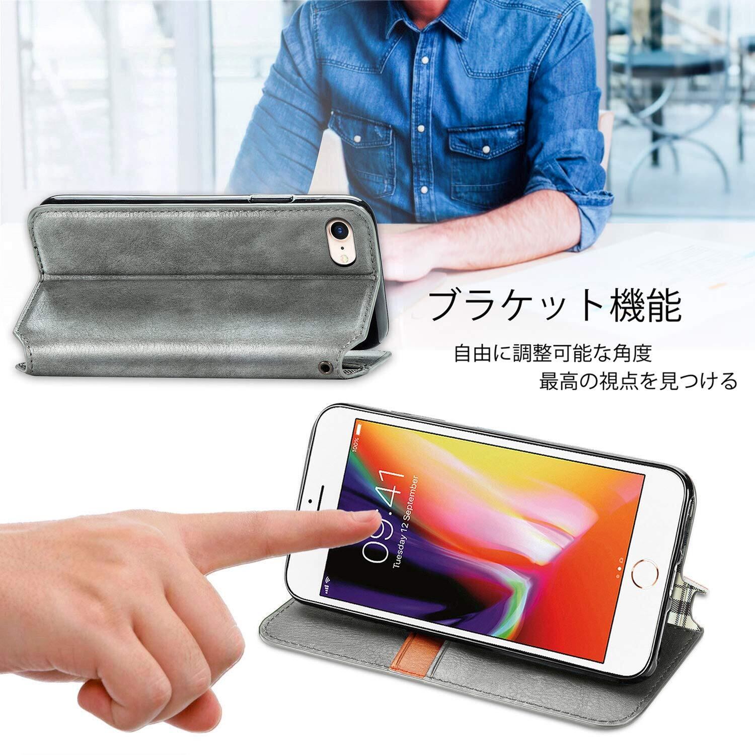 に適用するiPhone SE 第3世代 (2022) / iPhone SE 第2世代 (2020) / iPhone8 / iPhone7 ケース 手帳型 ノートブック型ビジネスフォンケース 携帯電話保護カバー強い吸引力ノートブック型多機能携帯電話ホルスター財布携帯電話ホルダーバンプパターンテクスチャ耐久性摩擦耐性携帯電話ケース男性と女性に適した多色オプション (グレー)