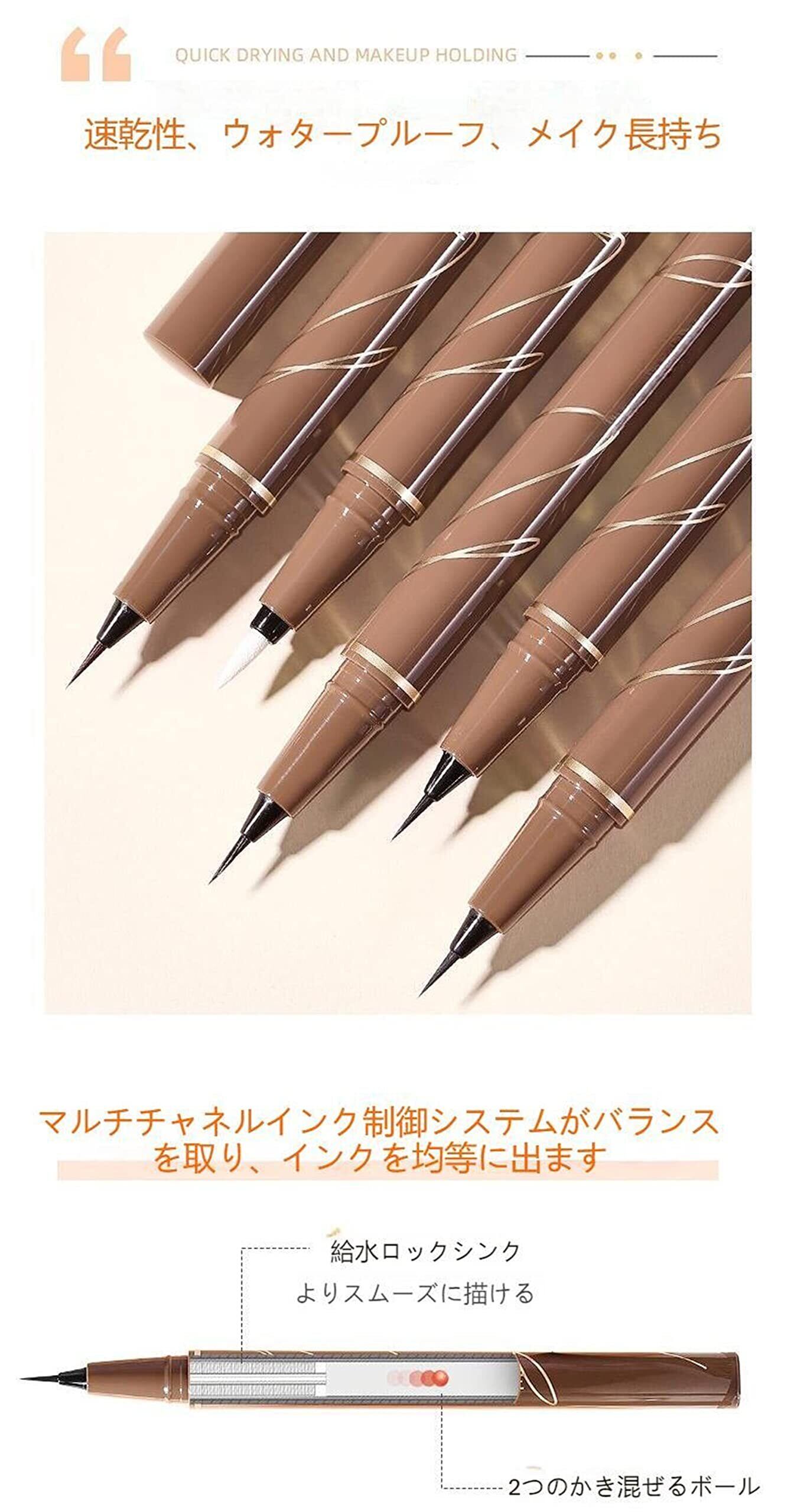 「防水・防皮脂・落ちにくい」キレイに目元の皮膚に密着し、摩擦でも水流しても落ちません。かきやすく、乾きやすく、瞬きをしてもぼかさない必須なアイライナーです。時間が経つとクマになってしまいますか?落ちにくいアイラインはお出掛けの必須!