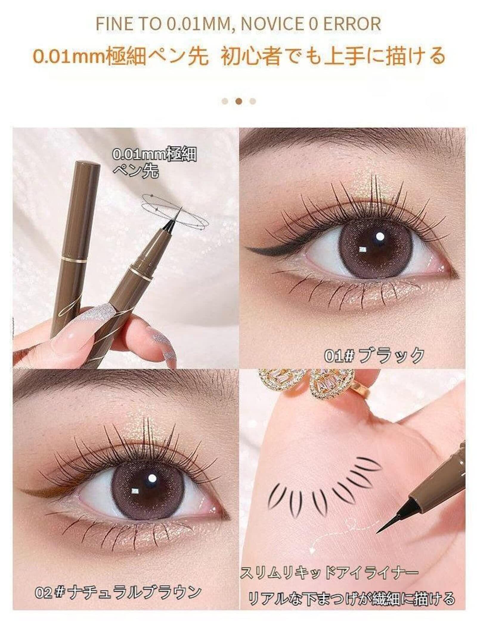 【2022最新】SUIKONE リキッドアイライナー 極細0.01mm 下まつげ アイライナー ウォータープルーフ アイライン 涙袋ライナー 防水 落ない 涙袋メイク コスメ (01#ブラック)