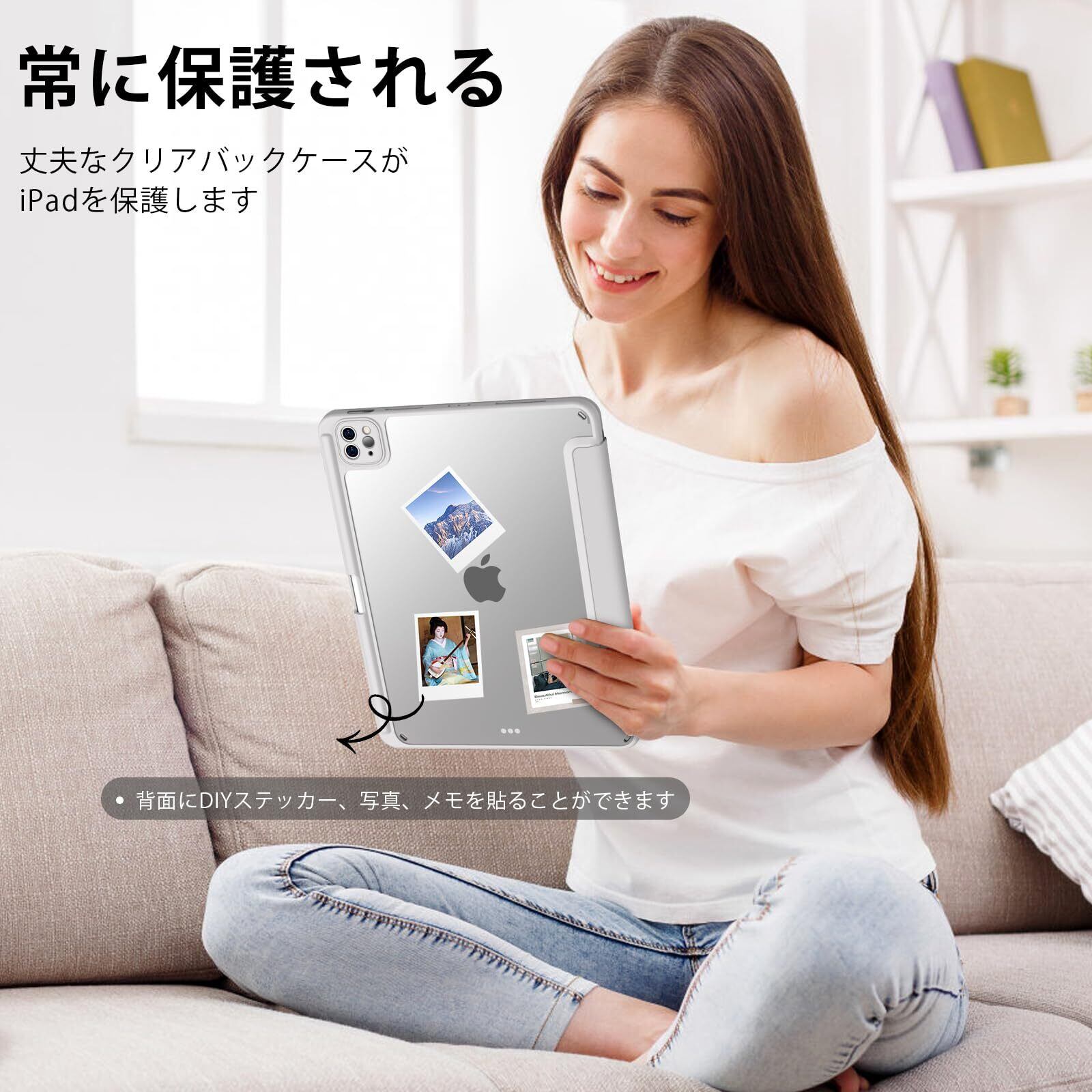iPad Air 11ンチ(M2)ケース 2024 iPad Air 第6/5/4世代 ケース 2022/2020 10.9 インチ iPad Pro 11 ケース(2022/2020) ペンシル収納 透明バックカバー Apple Pencil 2 ワイヤレス充電対応 三つ折スタンド スリープ機能 軽量 薄型