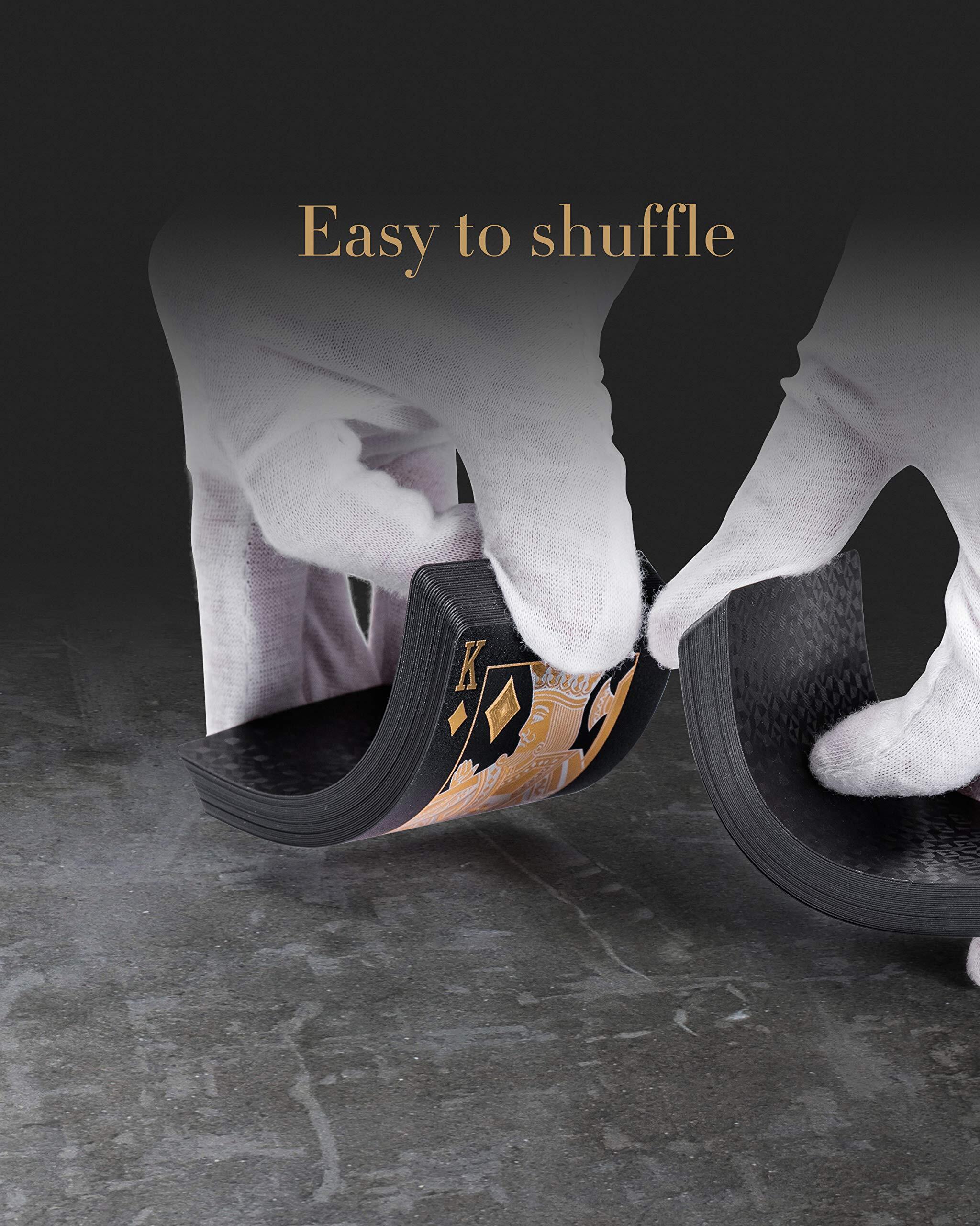トランプのデザインについて、全体的には黒地で、裏側に人気のダイヤモンドの模様があります、とても上品に見えます。旧版に比べて、新版トランプの図柄がナノ工芸を採用して印刷されるため、カードを光沢とエレガントにし、より豪華に見えます。