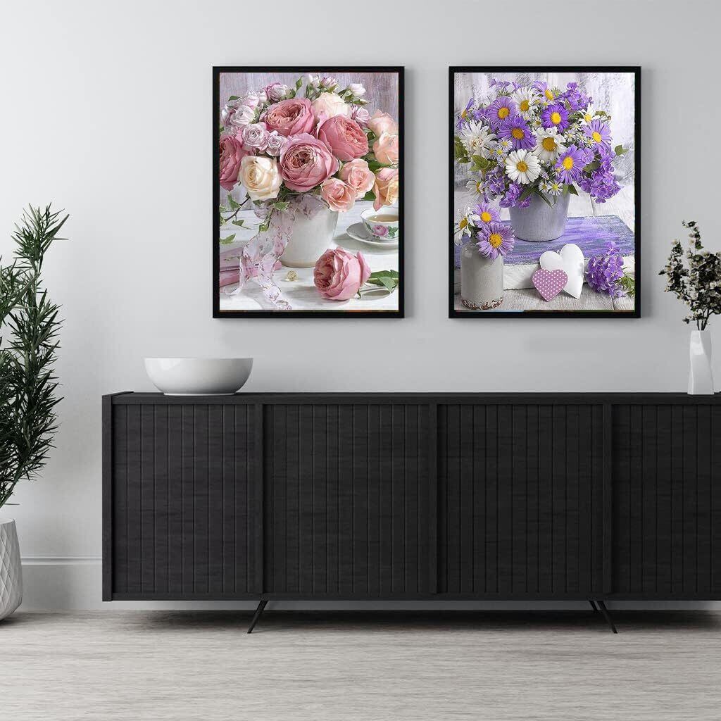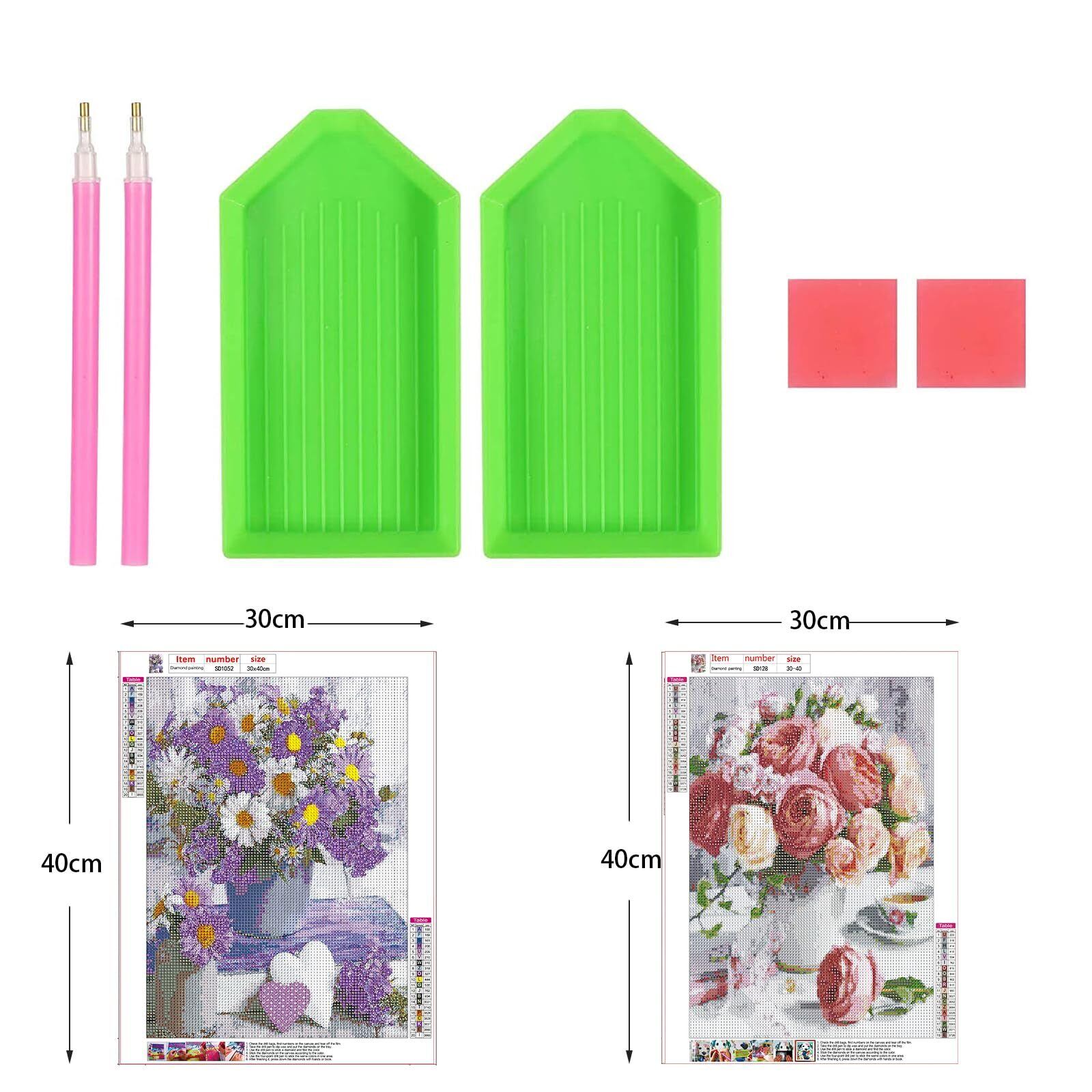 2枚ダイヤモンドアート キット Wikrtoria 5D ダイアモンドアート セット 塗装全面貼り付けダイアモンドビーズ絵画キット フラワー お花 手作り絵画 手芸キット モザイクアート ハンドメイド かわいい 芸術品 装飾 ダイヤモンド塗装 立体画面 壁掛け ツール30x40cm