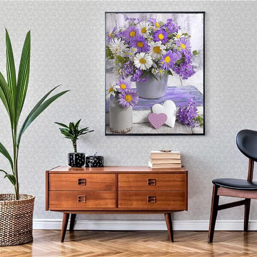 2枚ダイヤモンドアート キット Wikrtoria 5D ダイアモンドアート セット 全面貼り付けダイアモンドビーズ絵画キット お花 手作り絵画 手芸キット モザイクアート ハンドメイド かわいい 芸術品 装飾 ダイヤモンド塗装 立体画面 壁掛け ツール30x40cm