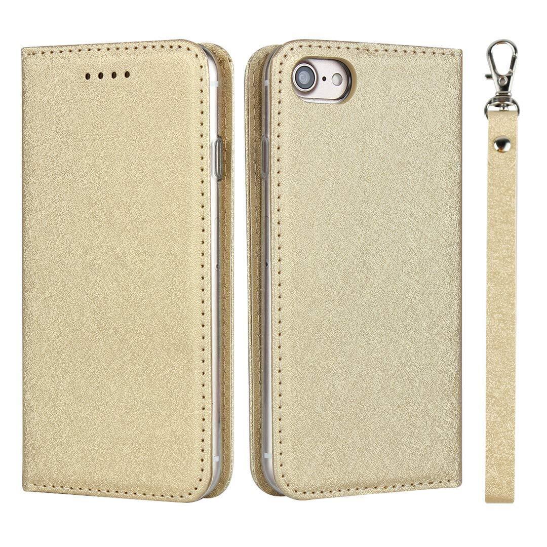Pelanty iPhone SE 第3世代 2022 ケース SE 第2世代 2020 新型 iphone8 ケース手帳型 iPhone7 財布型カバー case PUレザー 薄型 スマホケース ストラップ付き ベルトなし カード収納 マグネット式 スタンド機能 アイフォンse 2/ SE 3/ 7 / 8 4.7インチ 携帯カバー 滑り止め 全面保護 耐衝撃 軽量 (ゴールド)