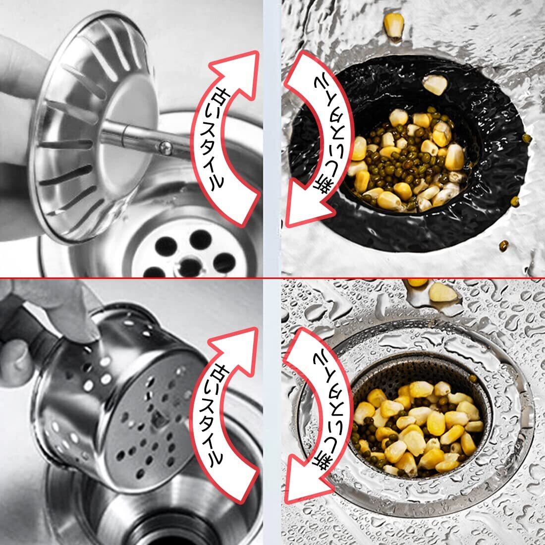 【排水ゴミ収集器】キッチンシンク、洗面台、浴室床排水、浴槽排水、ベランダ排水などに適しています。細かいステンレスメッシュが細かいゴミをキャッチし、家庭の生ゴミや髪の毛の絡まりを防ぎます。