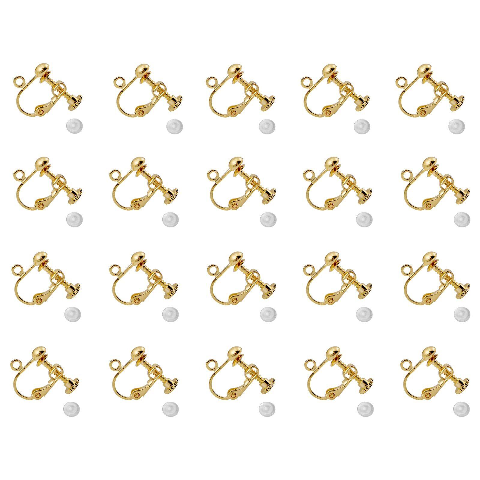 YFFSFDC イヤリングパーツ 10ペア 20個入 丸皿タイプ ジュエリー イヤリング金具 ネジバネ式 ピアスパーツ DIY ハンドメイド 基礎金具 (ゴールド)