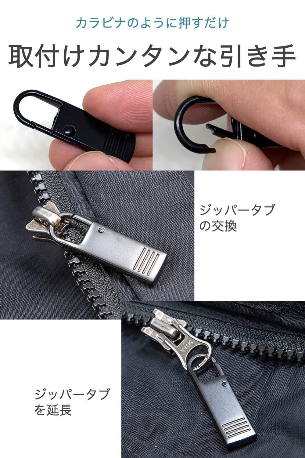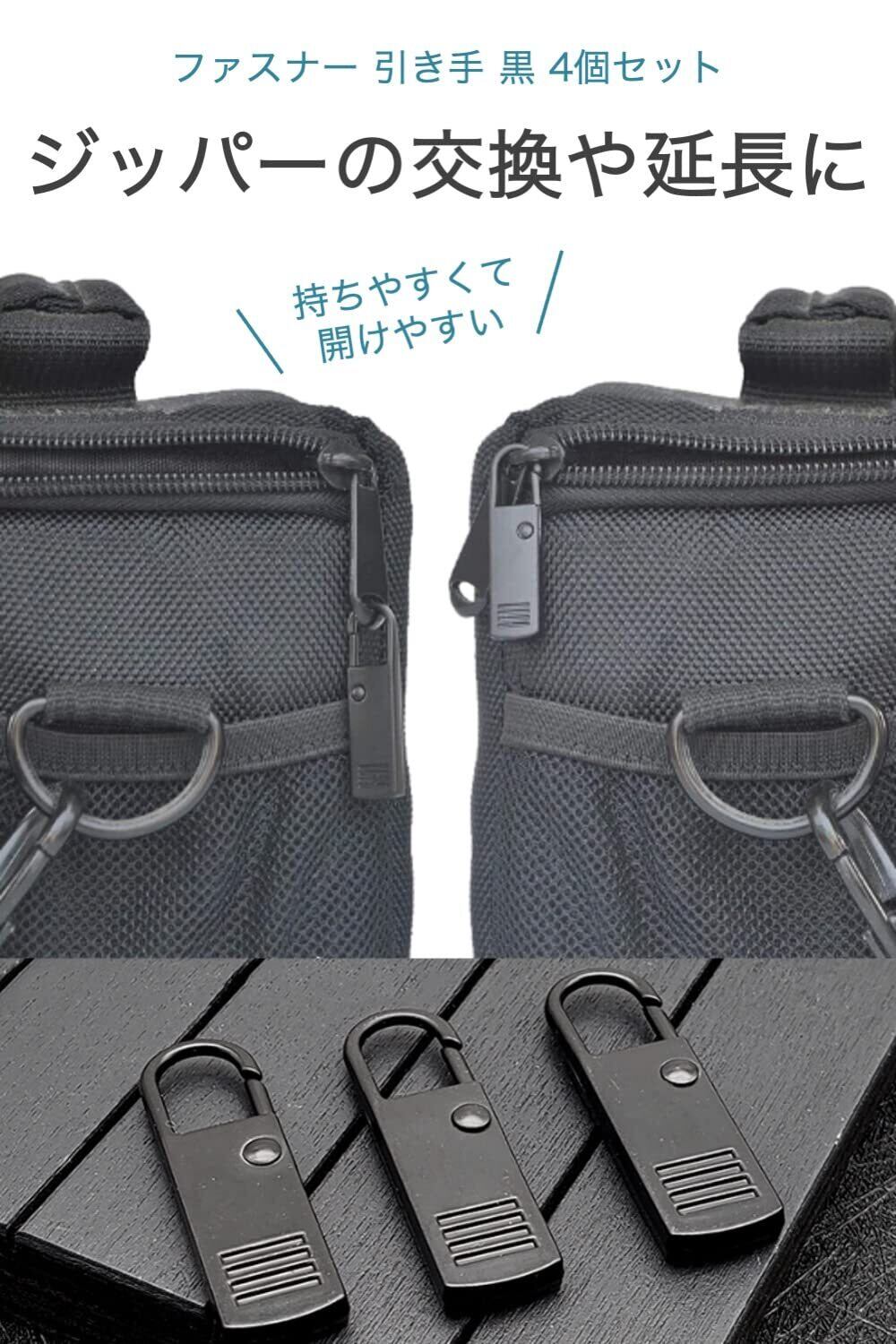 ファスナー引き手 黒 4個セット ジッパーやファスナーに付けるだけ 壊れてしまった取っ手の補修、交換に