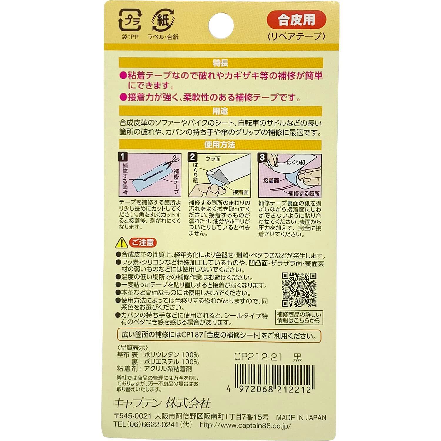 CAPTAIN88 キャプテン 簡単補修シリーズ 合皮の補修テープ 巾50mm×50cm巻 #21 黒 シールタイプ CP212