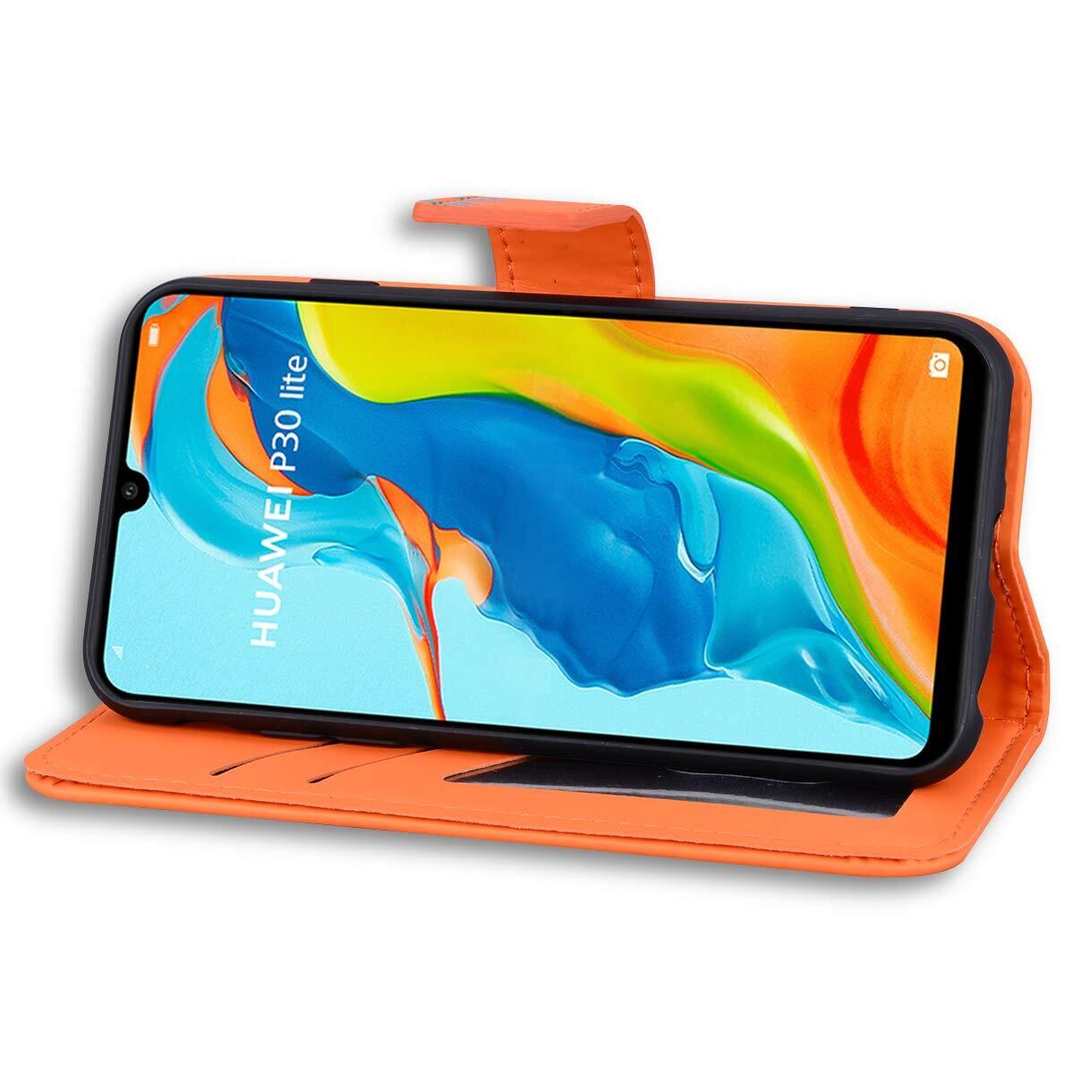 Huawei P30 Lite ケース 手帳型 P30 Lite ケース nova 4e ケース はーうえい p30 lite ケース かわいい動物 薄型軽量 Huawei P30 Lite カバー スタンド機能 傷つけ防止 p30lite ケース huawei p30 lite ケース おしゃれ 財布タイプ [6.15インチHuawei P30 lite/nova 4e] (オレンジ)