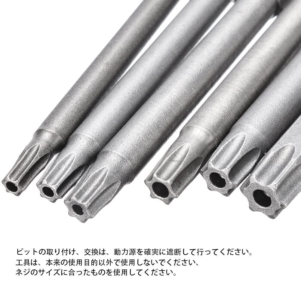 トルクスドライバーサイズ:長さ75mm、六角軸径6.35mm。仕様:T6、T7、T8、T9、T10、T15、T20、T25、T30、T35、T40。