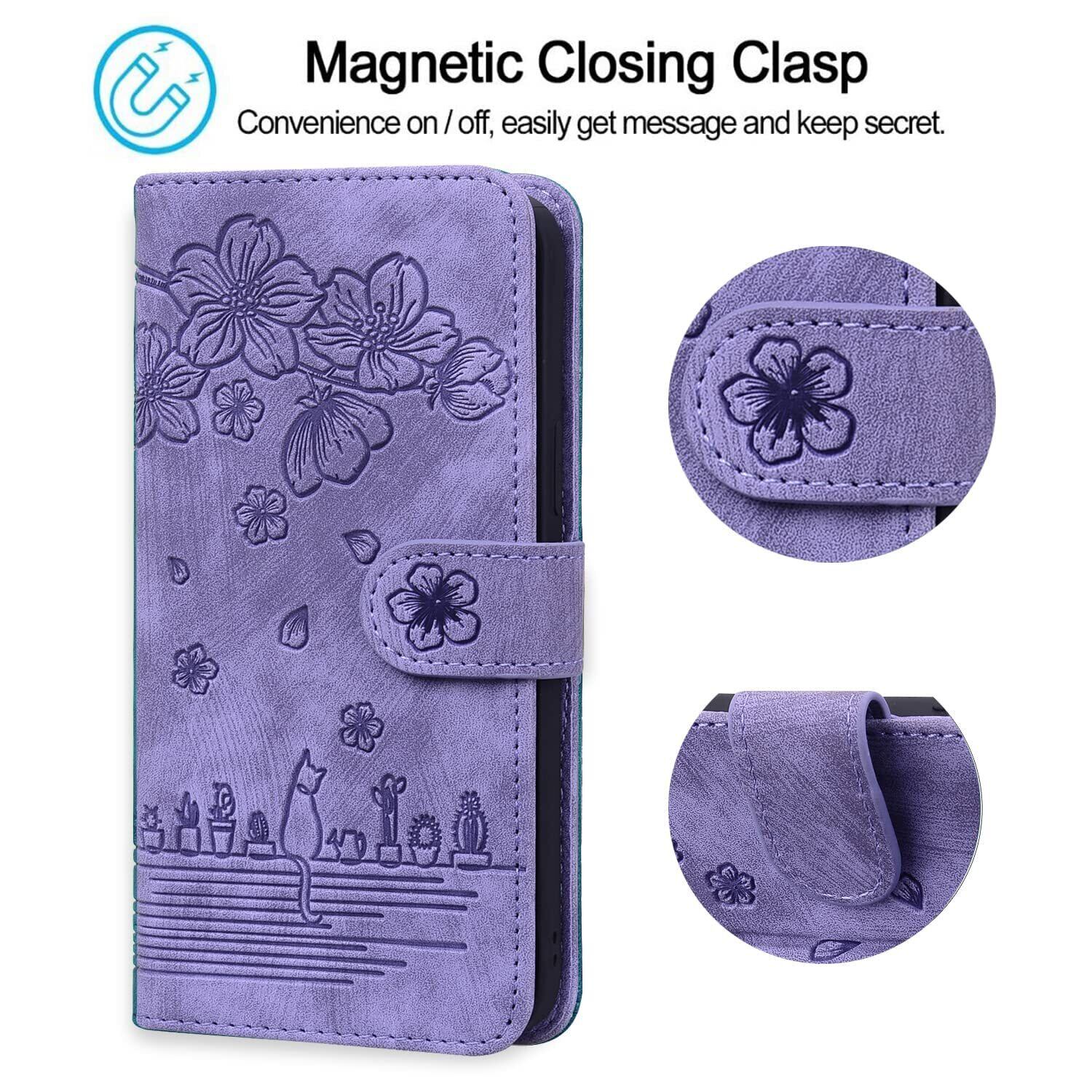 Google Pixel 6A ケース 手帳型 Pixel 6a ケース 手帳型 通用 [Rosbtib] google pixel 6a 手帳型ケース 高級PUレザー 内蔵 マグネット カードポケット スタンド機能 ピクセル 6a 携帯カバー 肌触り良い 肌感レザー さくらと子猫のパターン Pixel 6Aケース カバー 360度保護 耐衝撃 Google Pixel 6A 5.6インチ 対応 (紫)