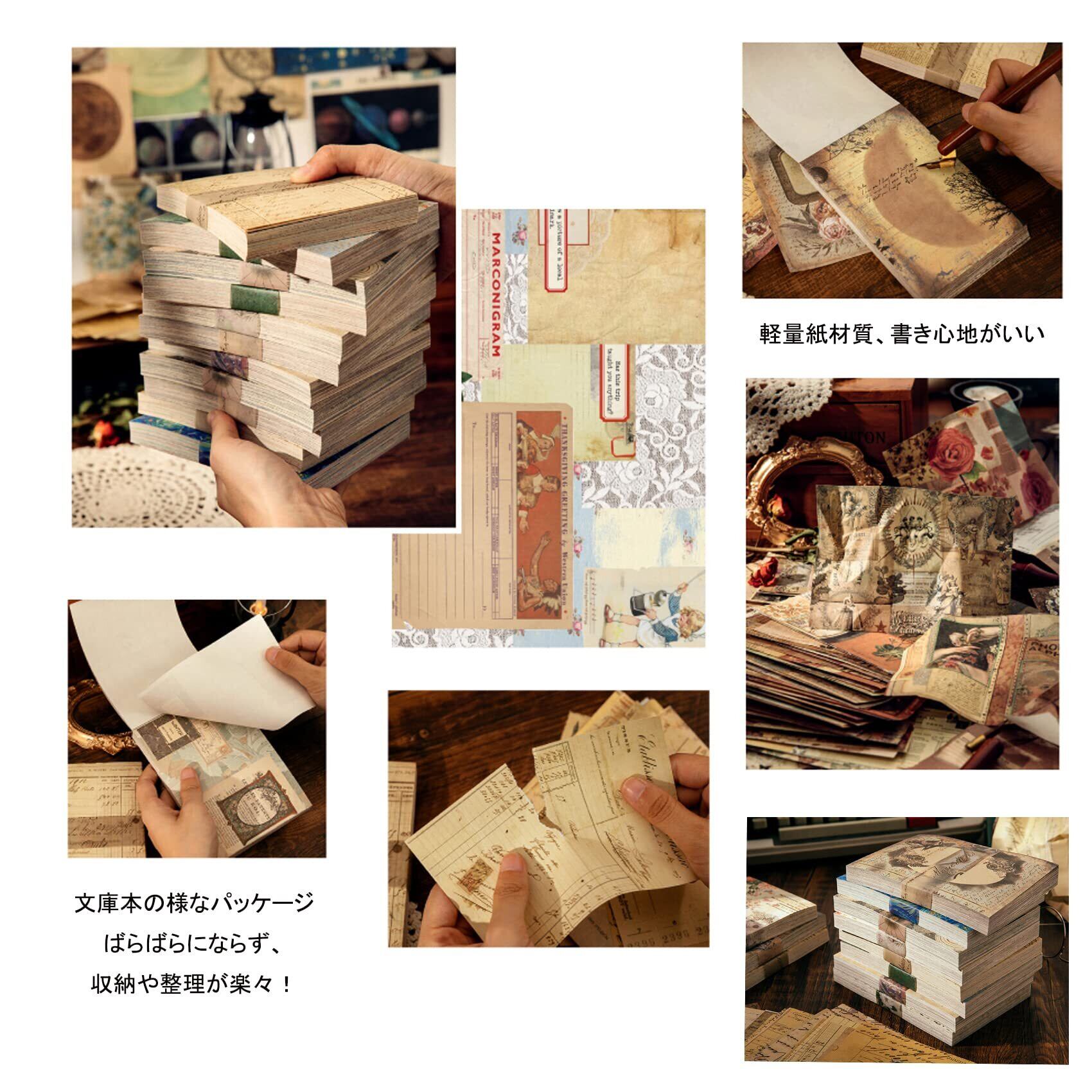 コラージュ、背景紙、おすそ分けファイル、手帳、ノート、手紙、カレンダー、日記、デコレーション、ラッピング、ジャンクジャーナルなどで活躍も期待できます。また、文庫本の様なパッケージで、ばらばらにならず、収納や整理が楽々!
