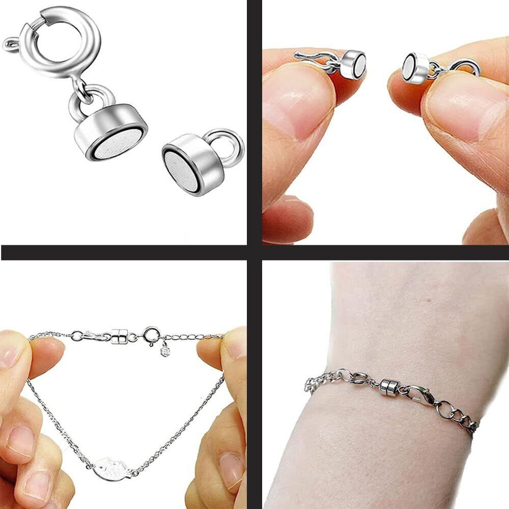 【簡単な装着】マグネット式でお手持ちのネックレスやブレスレットの留めにくい金具に取り付けるだけで、ワンタッチ装着が可能になります。伝統的なジュエリークラスプと比べて固定が簡単で、爪が長くてネックレスがつけにくい方や着脱が苦手な方にもおすすめです。