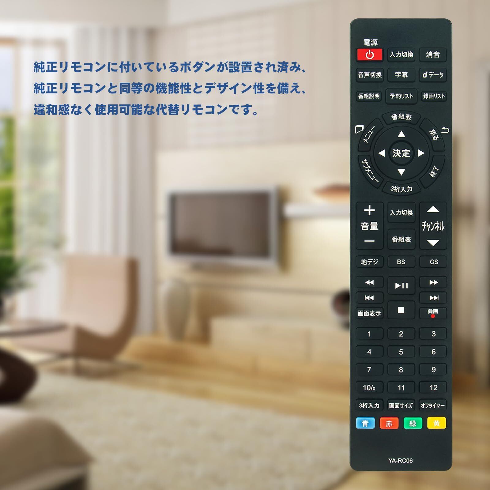 販売のリモコンは「代替リモコン」です。※この商品の実物の型番はYA-RC06です。※説明:①このリモコンは「QRT-RC06」の代用リモコンとして使用できます。 このリモコンは汎用リモコンではなく、他の型番の代用リモコンとして使用できないでございます。ご了承の上、ご購入ください。 ②このリモコンで操作する前に、アルカリ乾電池(新品)をご利用ください。