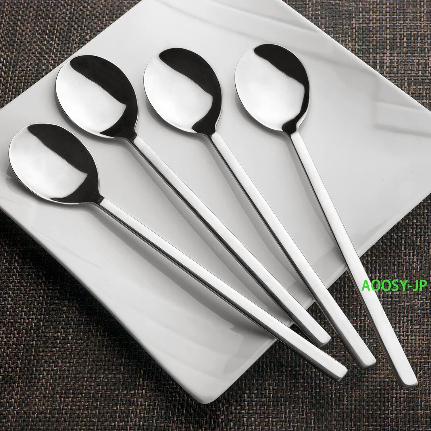 AOOSY スプーン 箸 4人用8点セット 食洗機対応カトラリーセット 四角形柄 韓国食器 ステンレス鋼製 鏡面仕上げ シルバー 軽いお箸 中空箸 来客用箸 業務用