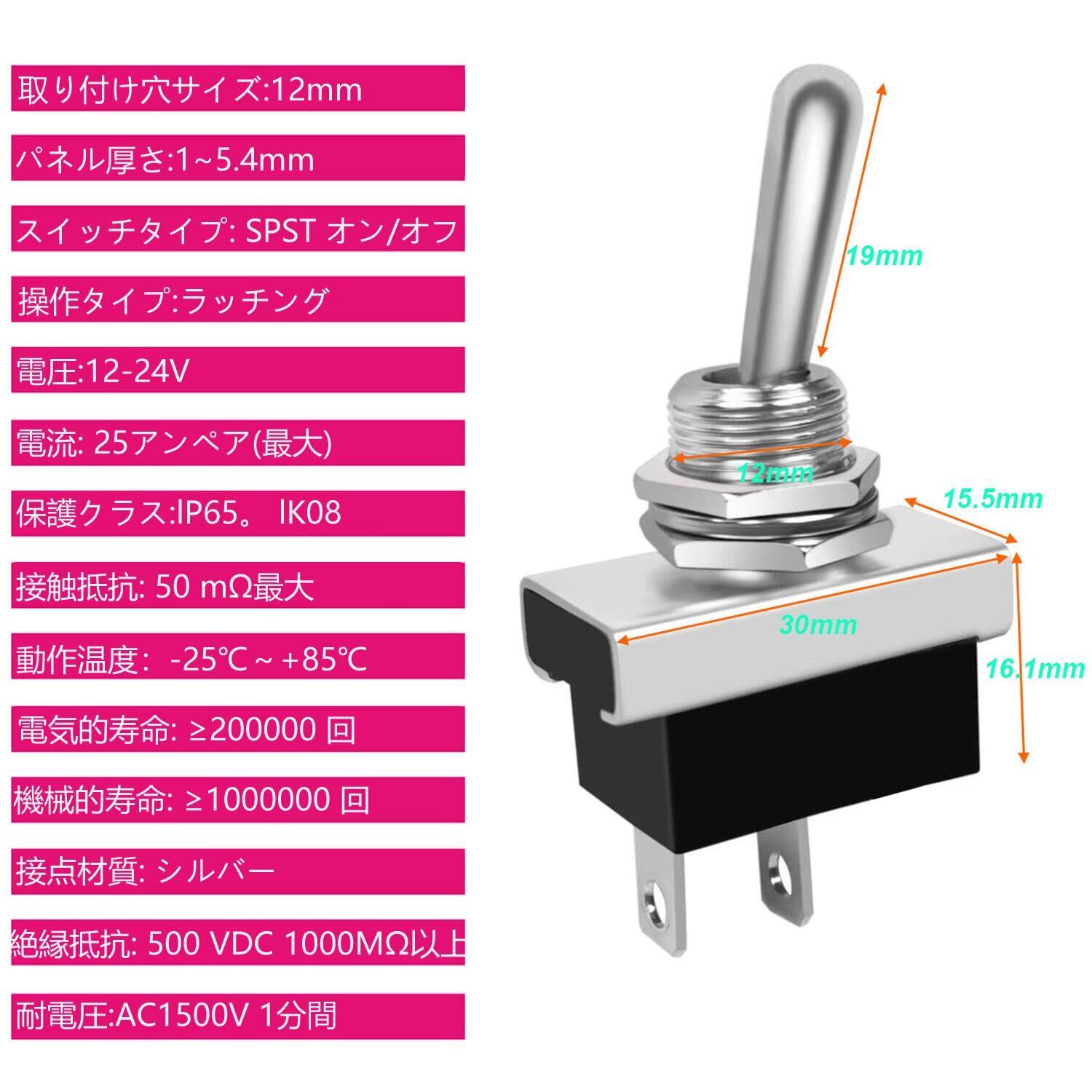 KILIGEN 金属トグルスイッチ 25A 12VDC/15A 24VDC/10A 250VAC/ 15A 125VAC SPST オン/オフ 2Pin 2 ポジション アップグレード防水カバーキャップ付き 自動車用 KN3D-101