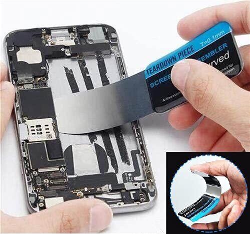 ⑴-2 W0021様ご評価続き 600円を切る安価に販売されていますが、 本当にありがたい製品でした、もっと早く知れたら良かったです。ヒートガンでスマートフォンを熱してから作業しましたが、 本当に薄くて頑丈なので、隙間に入ってしまったらあっさり するするーっと入り込んで行くのであまり深々と刺さないように 注意が必要です、中に薄い配線等あるので、奥まで差し込んで スライドさせると切ってしまうかもしれません、フチ部分の ノリだけ剥がすようにしたほうが良いです。 他の棒状のヘラとかプラ製のヘラは他の修理ツールについたものと ほとんど変わりないです、何に使うかわからない細長いシールも 付いていました。 パッケージはチャック付き袋でそのまま保管袋として使えて便利です。