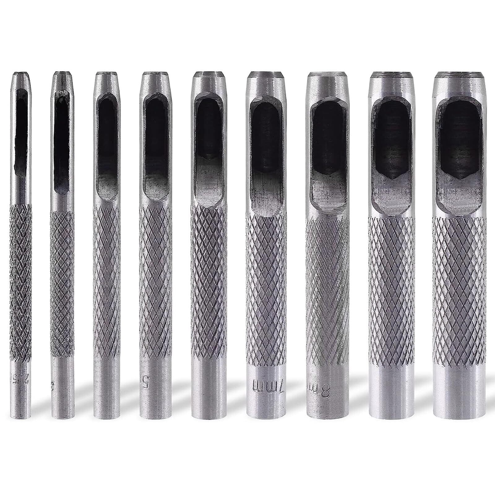 BTtime 穴あけポンチ (2.5mm 3mm 4mm 5mm 6mm 7mm 8mm 9mm 10mm) 9本セット 丸形 打ち抜きポンチ レザークラフト DIY 穴あけ道具