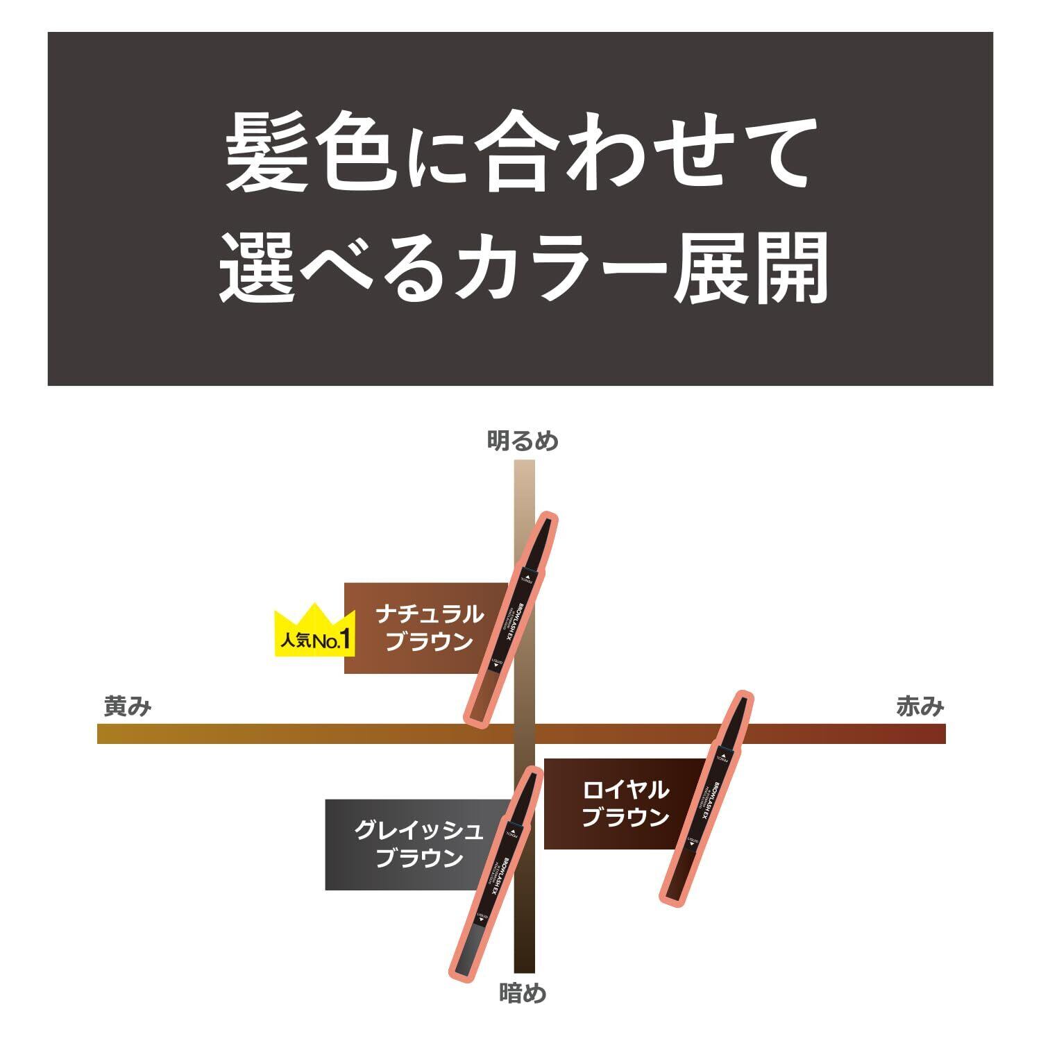 汗・水・皮脂をはね返す!耐水型、ペンシル+リキッドが1本になったWアイブロウ。眉頭から眉全体のラインは、ペンシルで、落ちやすい眉尻は、精密なラインが描ける毛筆リキッドで。2本の合わせ技で美しくくずれにくい眉を作ります。明るい髪色になじむナチュラルブラウン。