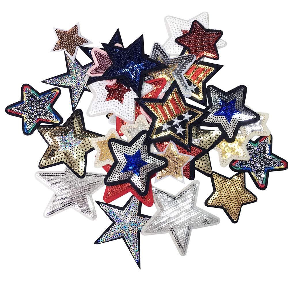 ワッペン 【30枚セット】 星 スパンコールモチーフ アイロン接着 ひざあて キラキラ アップリケ DIY服 おしゃれ 子供用 幼稚園 保育園 可愛い装飾 パッチ 補修