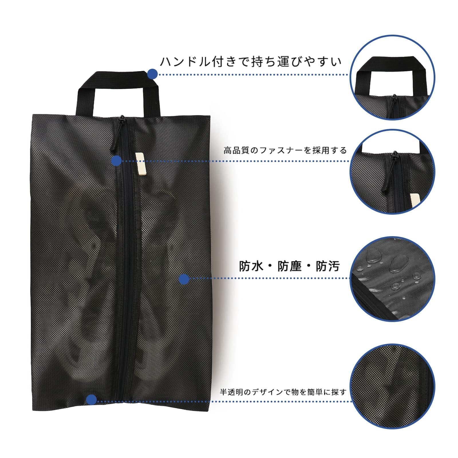 【防水・防塵・防汚】靴袋の表面はメッシュ素材で、シューズ ケースの通気性を高めます。内側はTPU素材で作られており、汚れを防ぎ、透明で滑らかな内面は靴の損傷を防ぐことができます。高品質の素材を採用して、防水防塵防汚、軽く、耐久性を保証するとともに柔軟性を兼ね備えています。