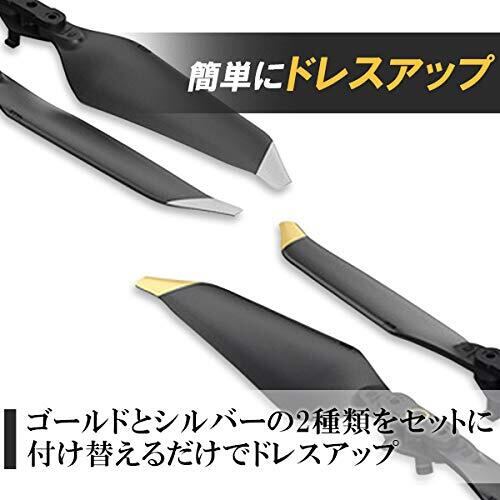 7kmもの遠隔操作が可能で、飛行時間も27分と長いDJI製の高性能ドローン、MAVIC PRO 8331F専用に制作された低ノイズプロペラです。今回はゴールドとシルバーのラインが入った2種類をセットでお届けするのでドレスアップにも使えます。