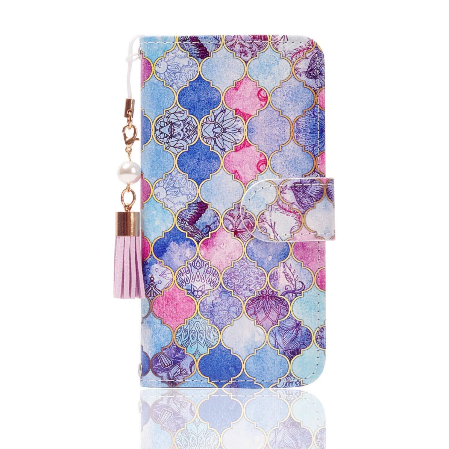 【在庫処分】らくらくスマートフォン F-42A らくらくスマートフォン me F-01L ケース 手帳型チャーム な タッセル ストラップ付き カードホルダー かわいい おしゃれ 人気 TPU スタンド 機能f42a 手帳型 f01l 手帳 スマホケース携帯ケース (らくらくスマートフォン me F-01L F-42A, 青い鳥柄)
