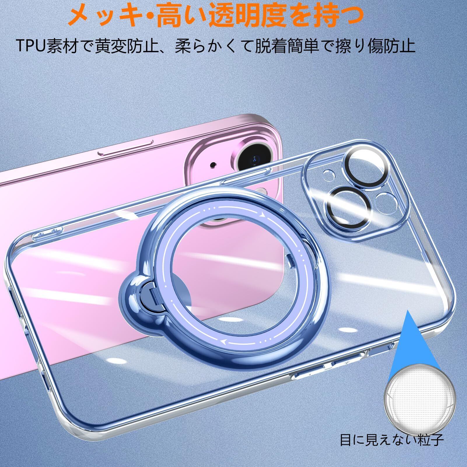 iPhone 11 Pro Max 用 ケース リング付き クリア磁気ケース 耐衝撃 Magnetic 対応 レンズフィルム 高透過率 スタンド機能 角度調整可能 透明 TPU 指紋防止 落下防止 防塵 薄型 軽量 一体型 変形防止 全面保護カバー アイフォン用 ケース 青 W-DDCX-11-04