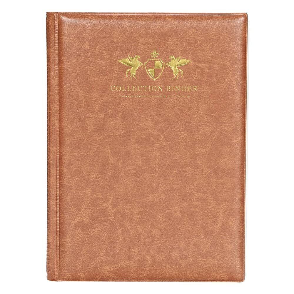 【特価セール】mini2x ビックリマン 用 シール コレクション ファイル チョコシール ウエハース 大容量 18ページ 最大432枚 48mm 52mm 大きいシールサイズにも対応 B5サイズ (黒 茶) (茶色 18ページ)