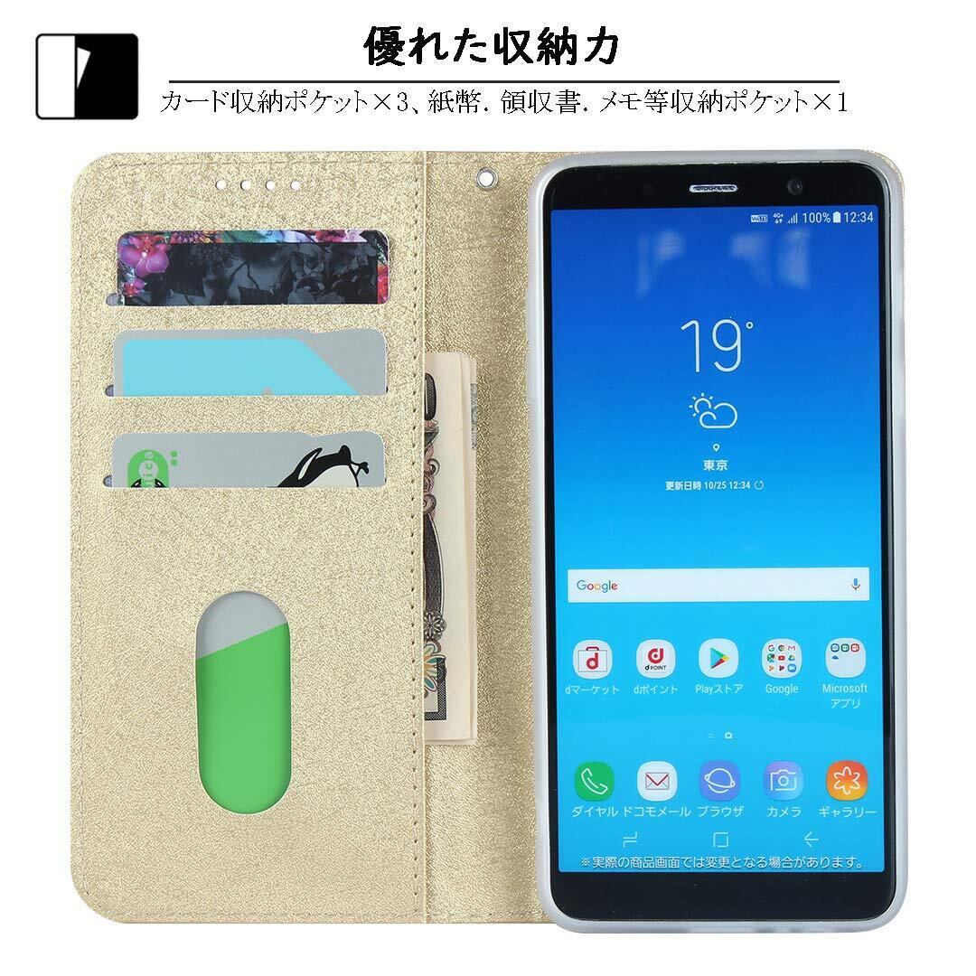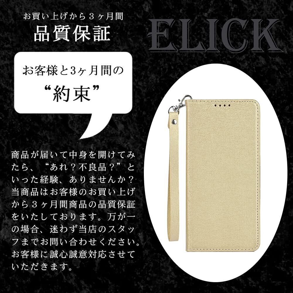 Elick Galaxy Feel2 SC-02L 用 ケース カバー 薄型 高級PUレザー 手帳型 マグネット式 ベルトなし ストラップ付き カード収納 ギャラクシー フィールス2 SC-02L docomo スマホケース ゴールド