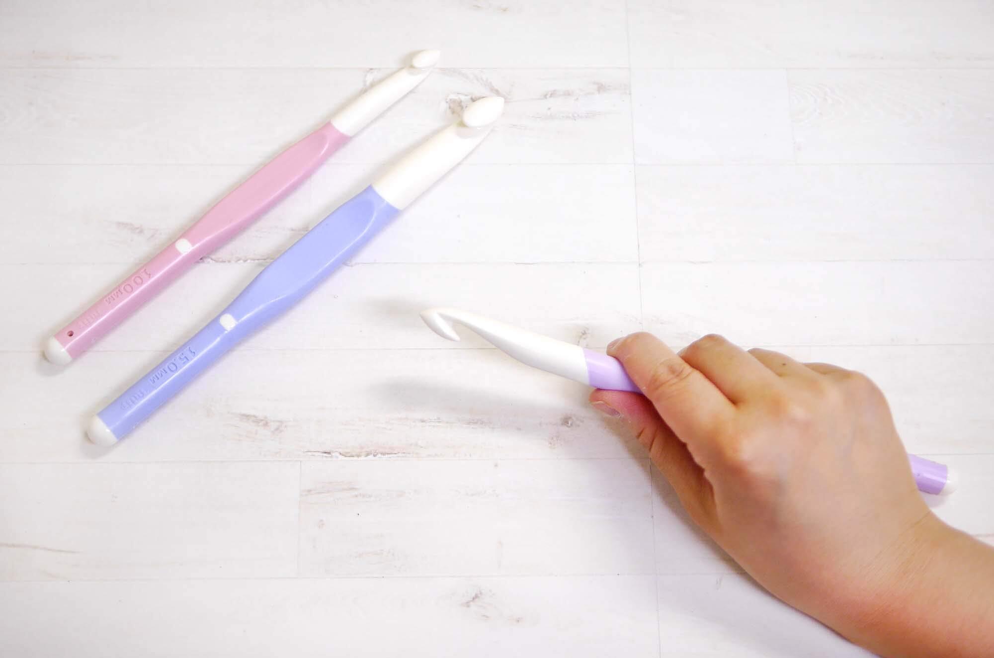 鉛筆持ちで編む際に、握りやすい太さと理想的な形状。