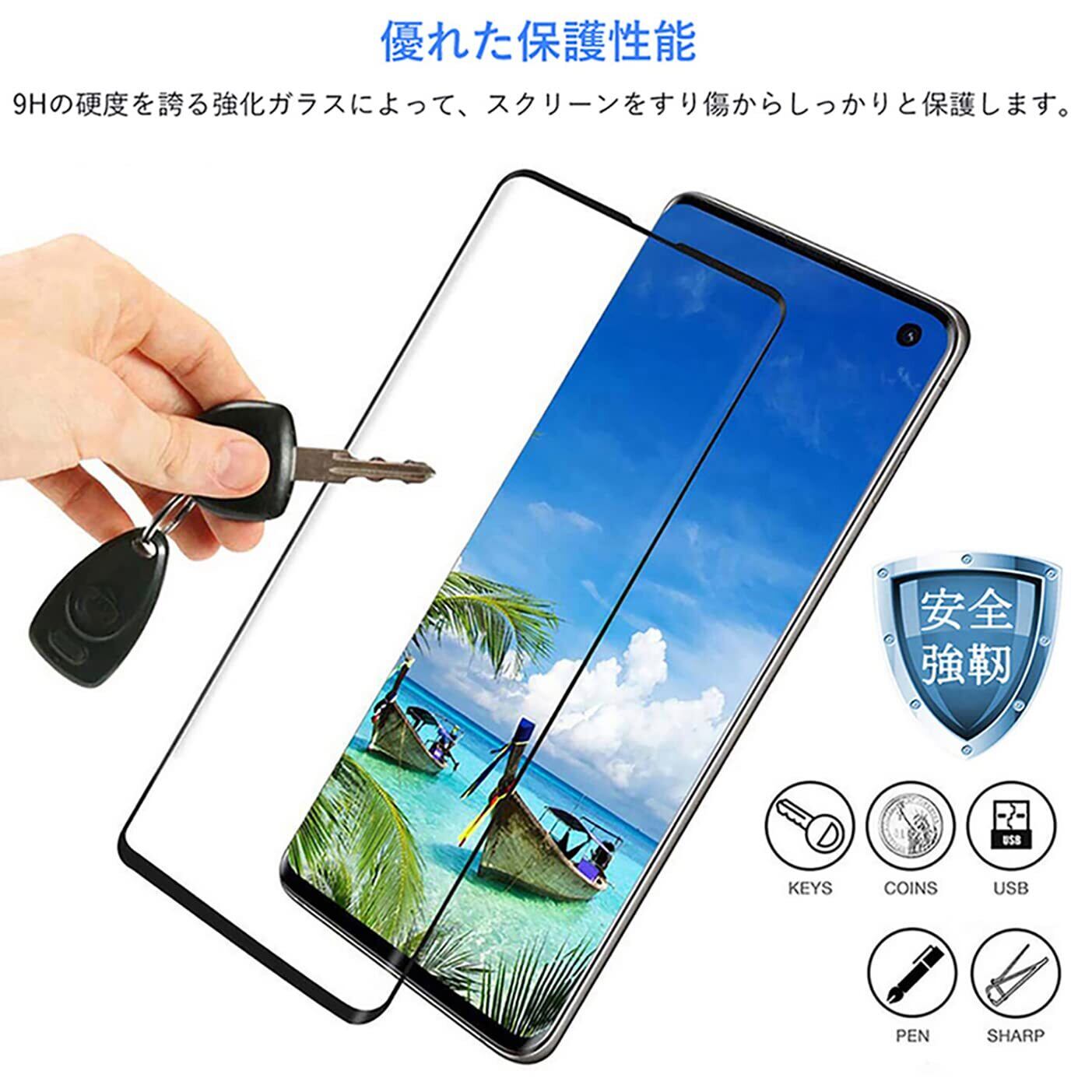 Samsung Galaxy S10 用 ガラスフィルム 強化ガラス 保護フィルム 指紋認証対応【2枚セット】S10 フィルム 3D曲面 硬度9H 耐スクラッチ 高透過率 高感度タッチ 指紋防止 気泡防止 自動吸着 秒で貼り付け Galaxy S10 対応 強化ガラスフィルム