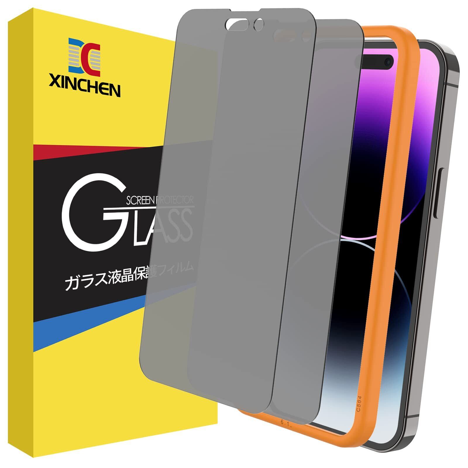 【覗き見防止】XINCHEN ガラスフィルム iPhone 14 Pro 用 プライバシー保護フィルム 全面保護 のぞき見防止 強化 ガラス 自動吸着(6.1インチ アイフォン14 Pro 用)2枚セット