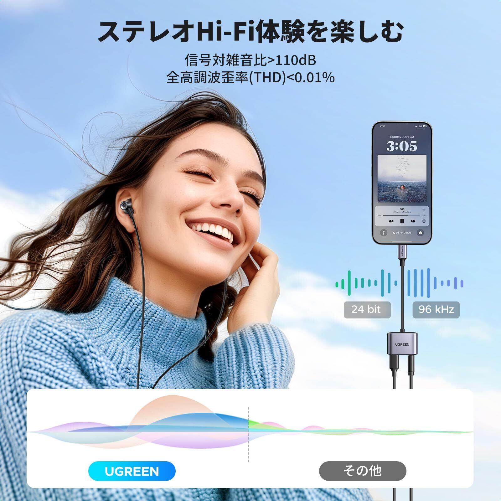 【高音質】DAC搭載とHiFi技術を採用し、最大24Bits 96KHzのサンプリングレートとノイズの除去により、明瞭で鮮明な音質を実現し、CDのようなハイクオリティを楽しめます。内部には優質の銅製ワイヤ素材を使って、効率的な伝送と安定した信号を確保して、より快適な体験を実現します。