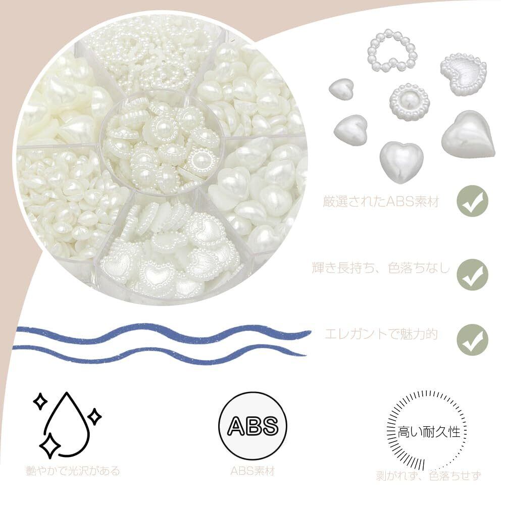 ネイルパーツハート 約460個 パール 半円 ハート型 ネイルパール 大きめネイルアートネイル パール 底平 DIY ネイルストーン ストーン ハン ドメイド ネイルアート デコパーツ ネイル装飾 ホワイト 収納ボックス付き(11mm/10mm/9,mm/8mm/7mm/5mm)
