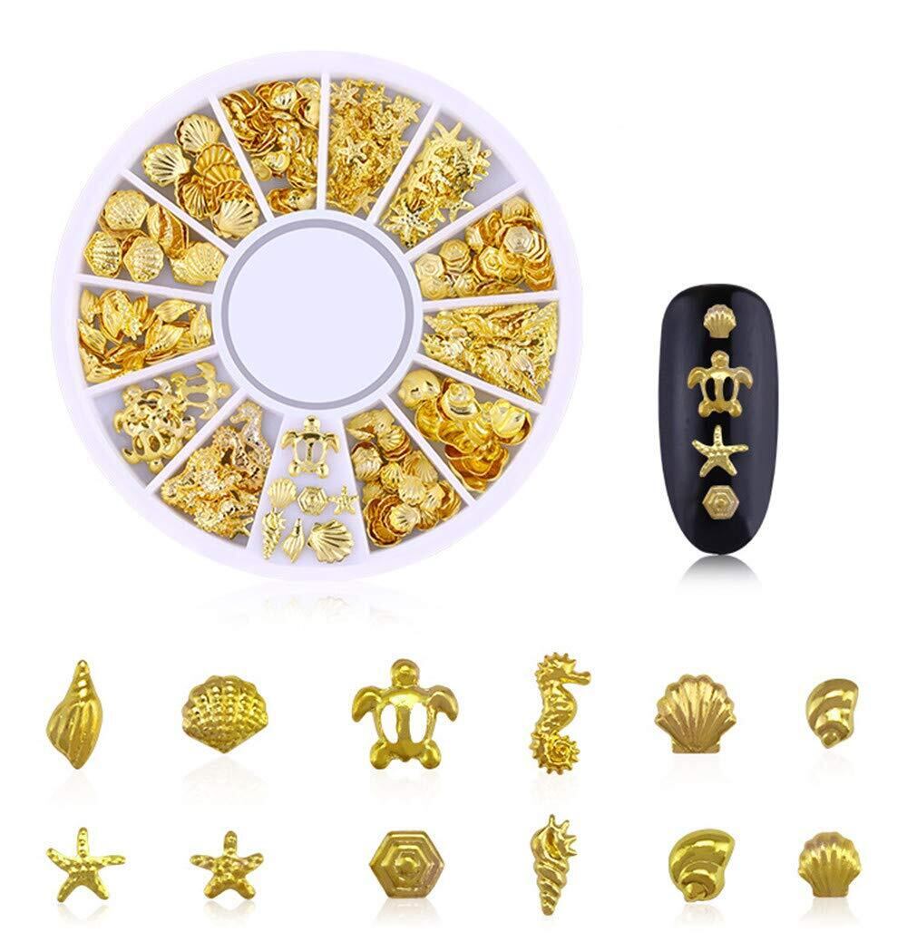 Kingsie ネイル スタッズ メタルパーツ ネイルパーツ 夏 ジェルネイル ネイルアート レジン 手作り 6ケースセット (ゴールド)