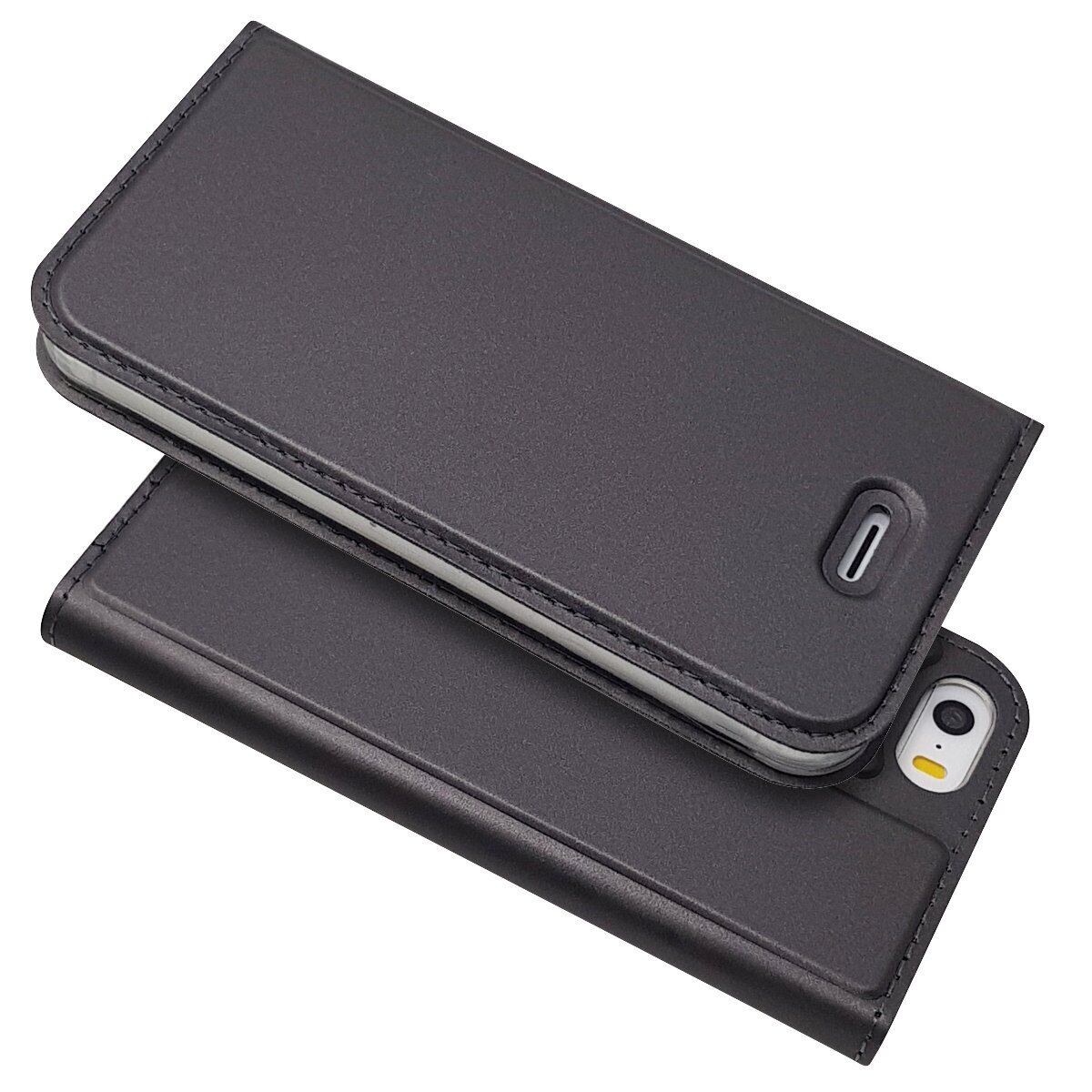iPhone 5S iphone 5 ケース iphone SE (2016版) 通用 手帳型 iPhone5 iPhone5s iPhoneSE 第一世代(2016版)カバー アイフォン case 適用 【iCoverCase】 アイフォン5 アイフォン5s アイフォンSE 2016 スマホケース 内蔵マグネット カードポケット スタンド機能 軽量 超薄型 ブラック 薄い黒 ライトブラック