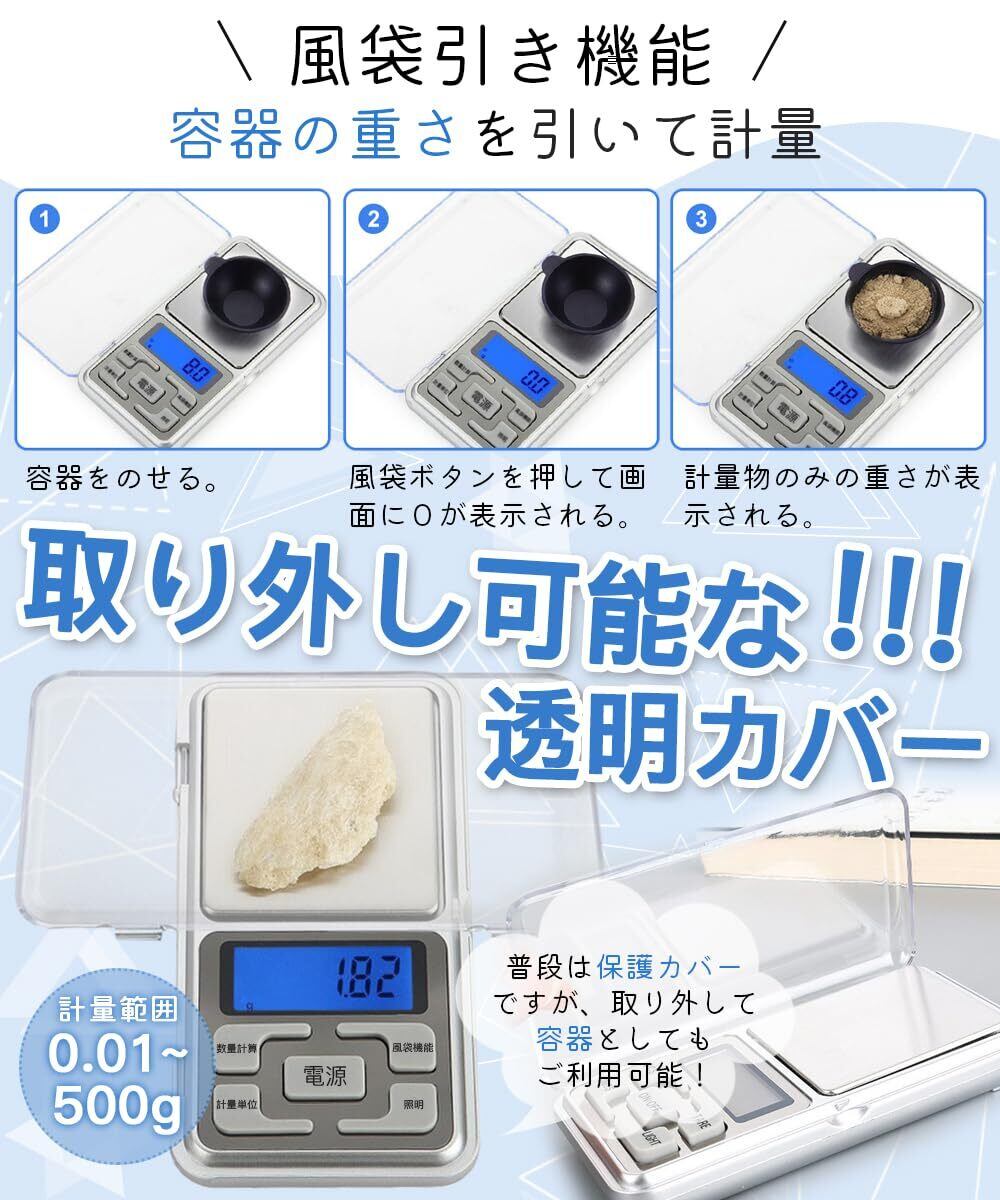 YFFSFDC ポケットスケール 0.01g単位 500g デジタル スケール はかり 秤 高精密 デジタル計り 携帯タイプはかり 業務用 計量天秤 携帯便利 コンパクト 日本語ボタン 日本語取扱説明書付