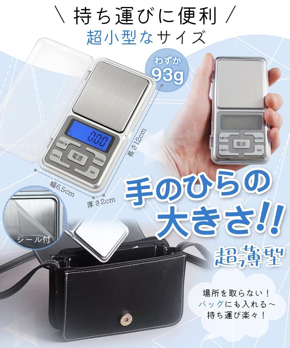 【高精度な計量が可能!】500gまでの精密計量が可能です。0.01g単位の計量精度で、正確な計量を行うことができます。郵便物、コーヒー豆、くすりやサプリなの計量はもちろん、業務用としてもおすすめです。