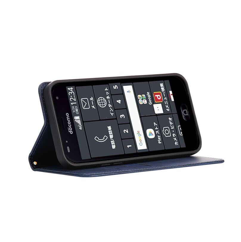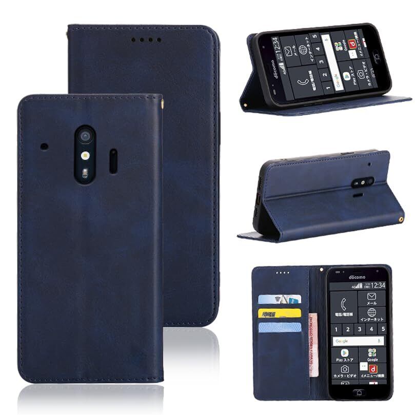 【新春セール】らくらくスマートフォン me F-01L / F-42A ケース 手帳型 カバー PUレザー カード収納 財布型 耐衝撃 ケース マグネット スタンド機能付き 5色 (深い青)