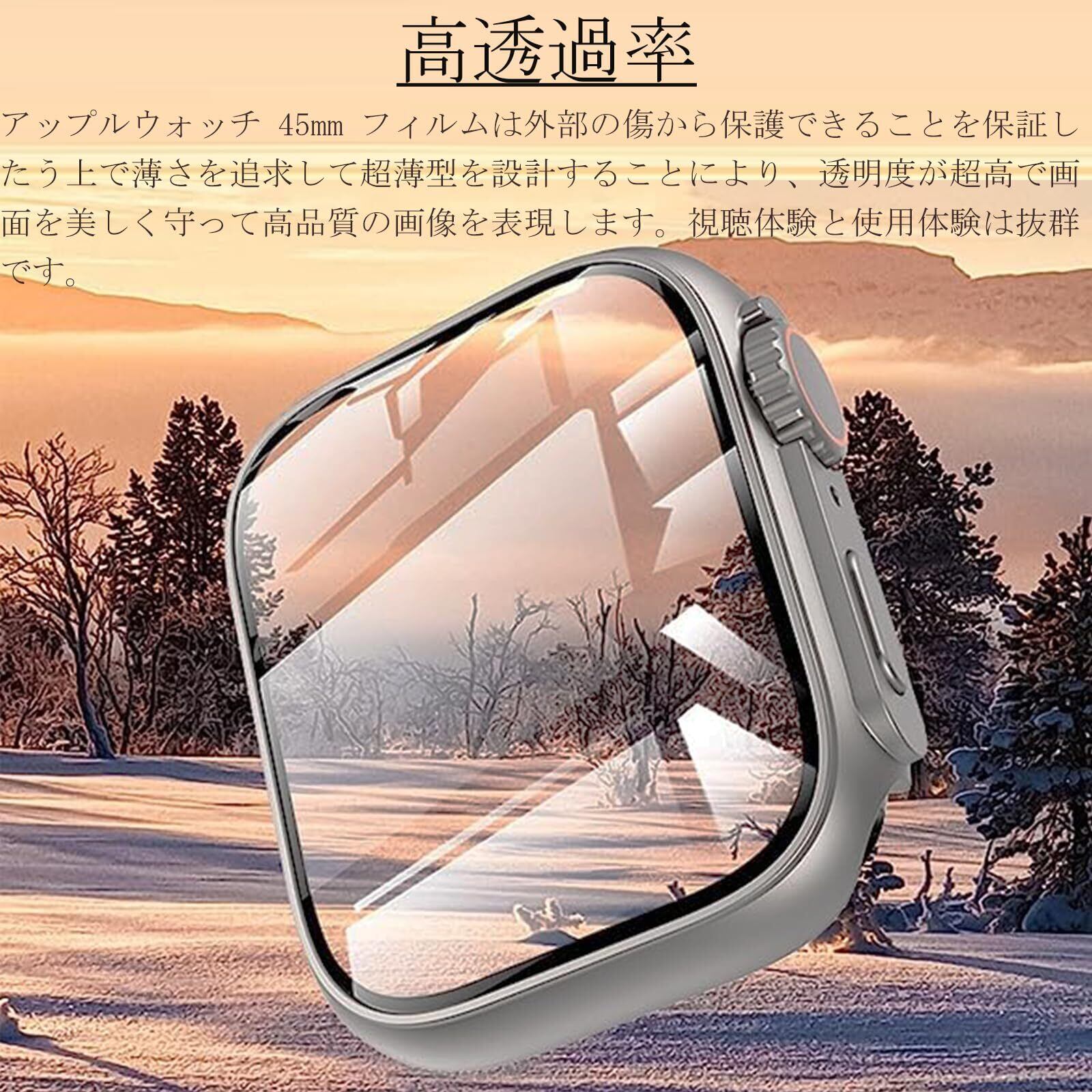 【指紋防止|飛散防止】Apple Watch 45mm カバーのガラス表面には、指紋の付きにくい加工が施されており、それによって指紋だけでなく油分や水分も弾けます。飛散防止で、万が一衝撃でで割れれば、ガラスが飛び散ることはありません。