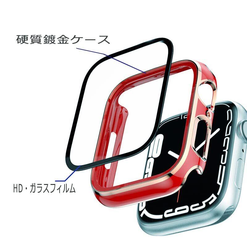 【在庫セール】アップルウォッチカバー ケース 38mm 40mm 41mm 42mm 44mm 45mm apple watch用 ガラスフィルム 一体型, Series 9 8 7 SE 6 5 4 3 2 全シリーズに適用 全面保護 ダイヤモンド付けとメッキゴールド襟二つ流行タイプ